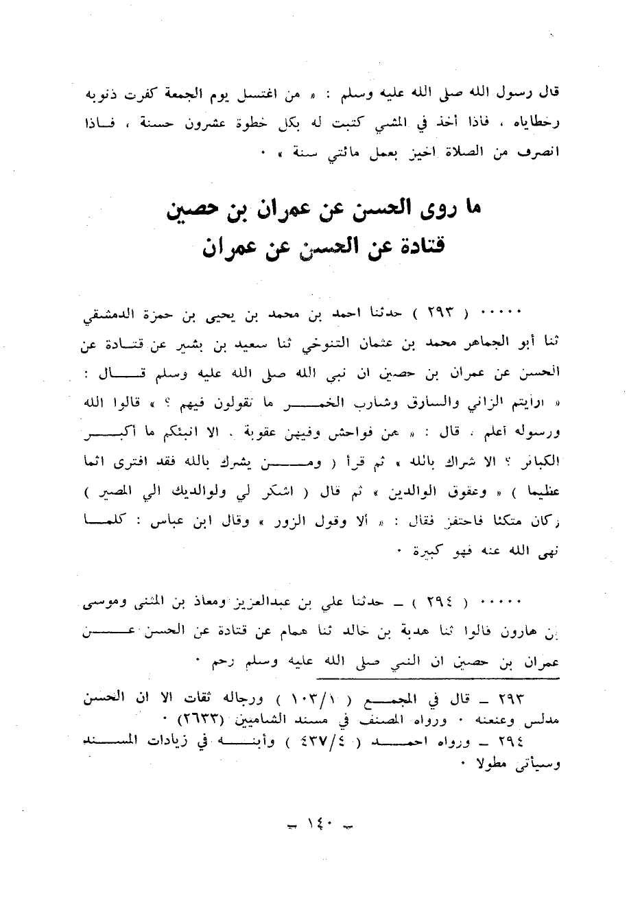 §مَا رَوَى الْحَسَنُ عَنْ عِمْرَانَ بْنِ حُصَيْنٍ قَتَادَةُ عَنِ الْحَسَنِ عَنْ عِمْرَانَ