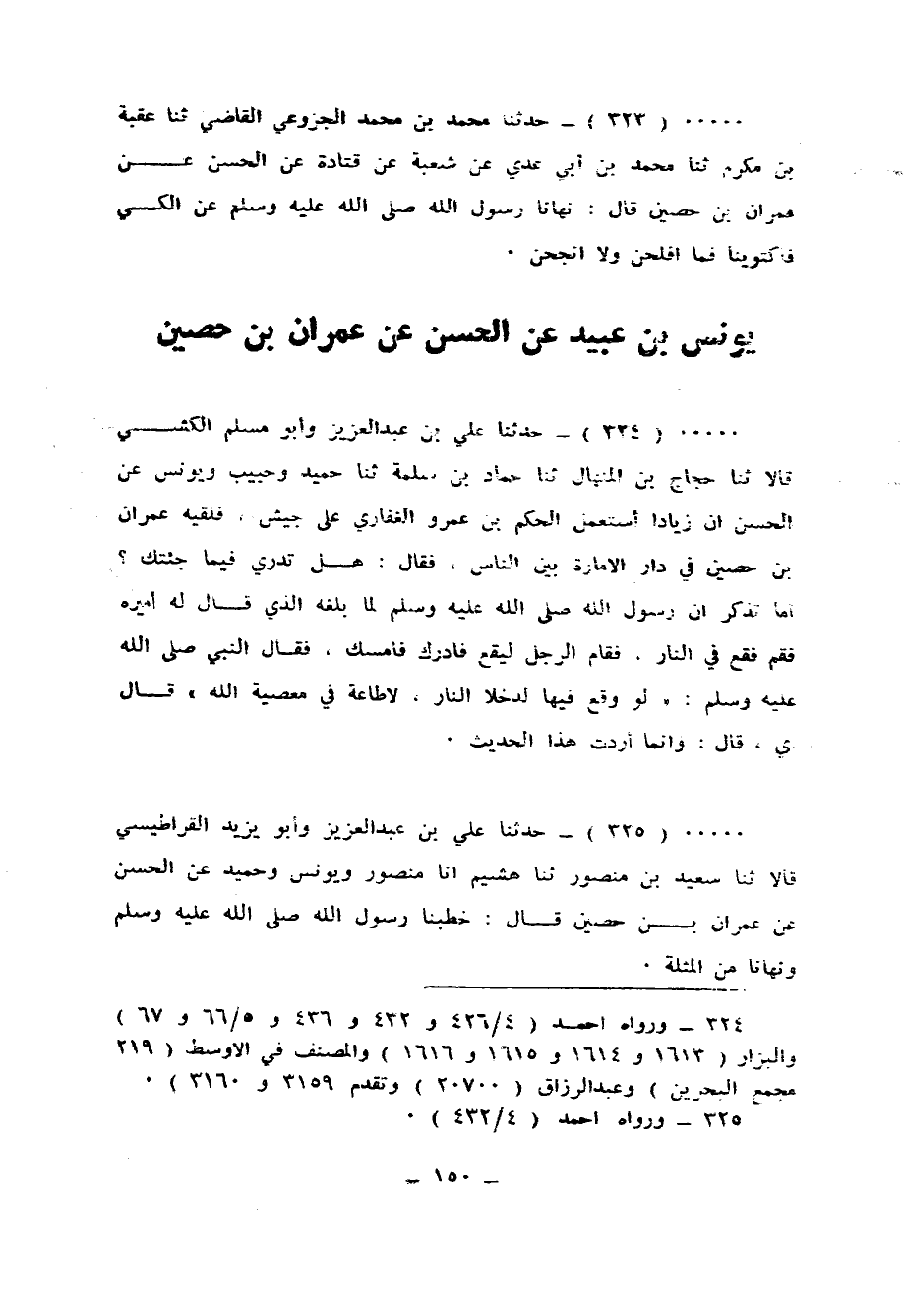 §يُونُسُ بْنُ عُبَيْدٍ عَنِ الْحَسَنِ عَنْ عِمْرَانَ بْنِ حُصَيْنٍ