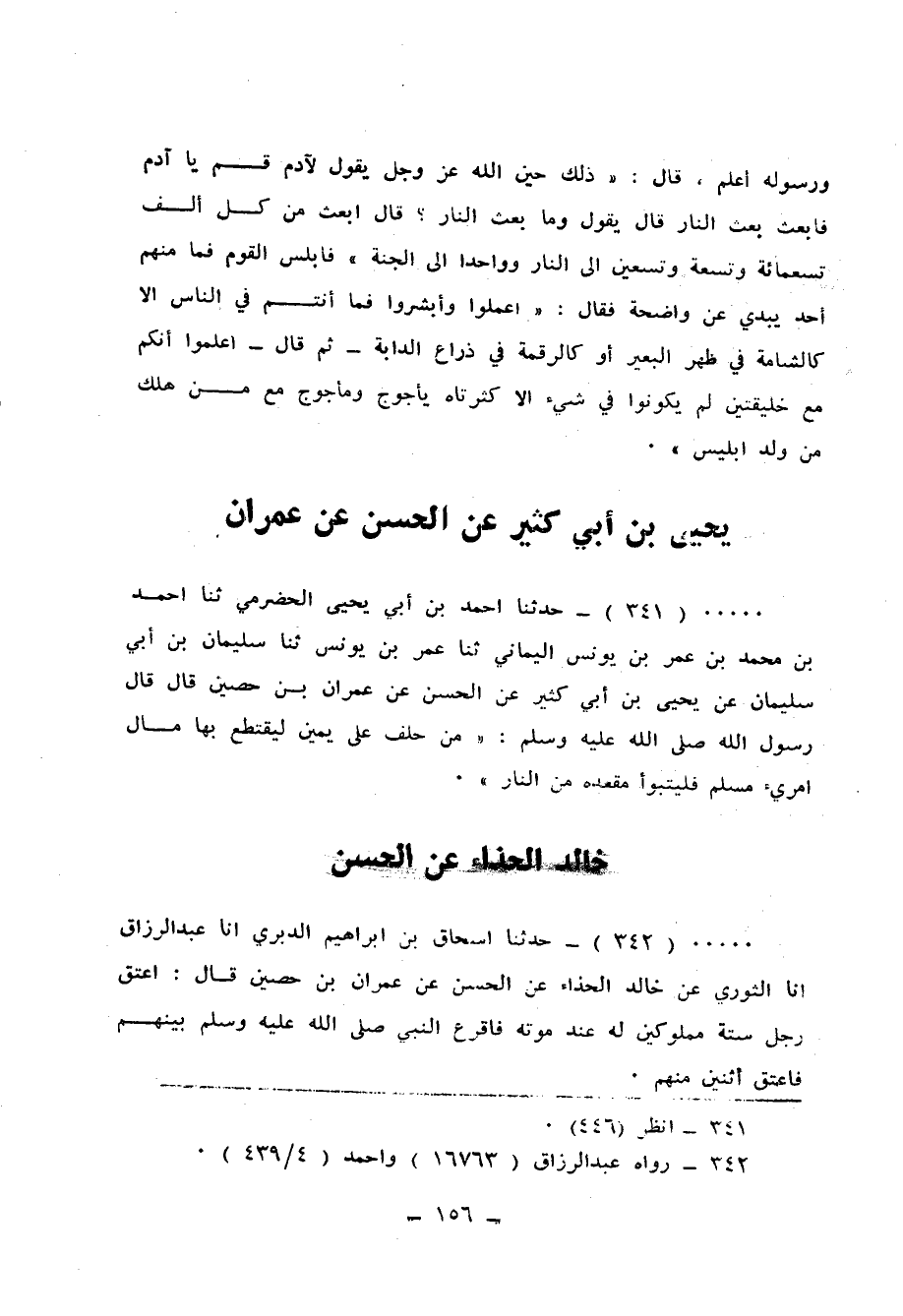 §يَحْيَى بْنُ أَبِي كَثِيرٍ عَنِ الْحَسَنِ عَنْ عِمْرَانَ