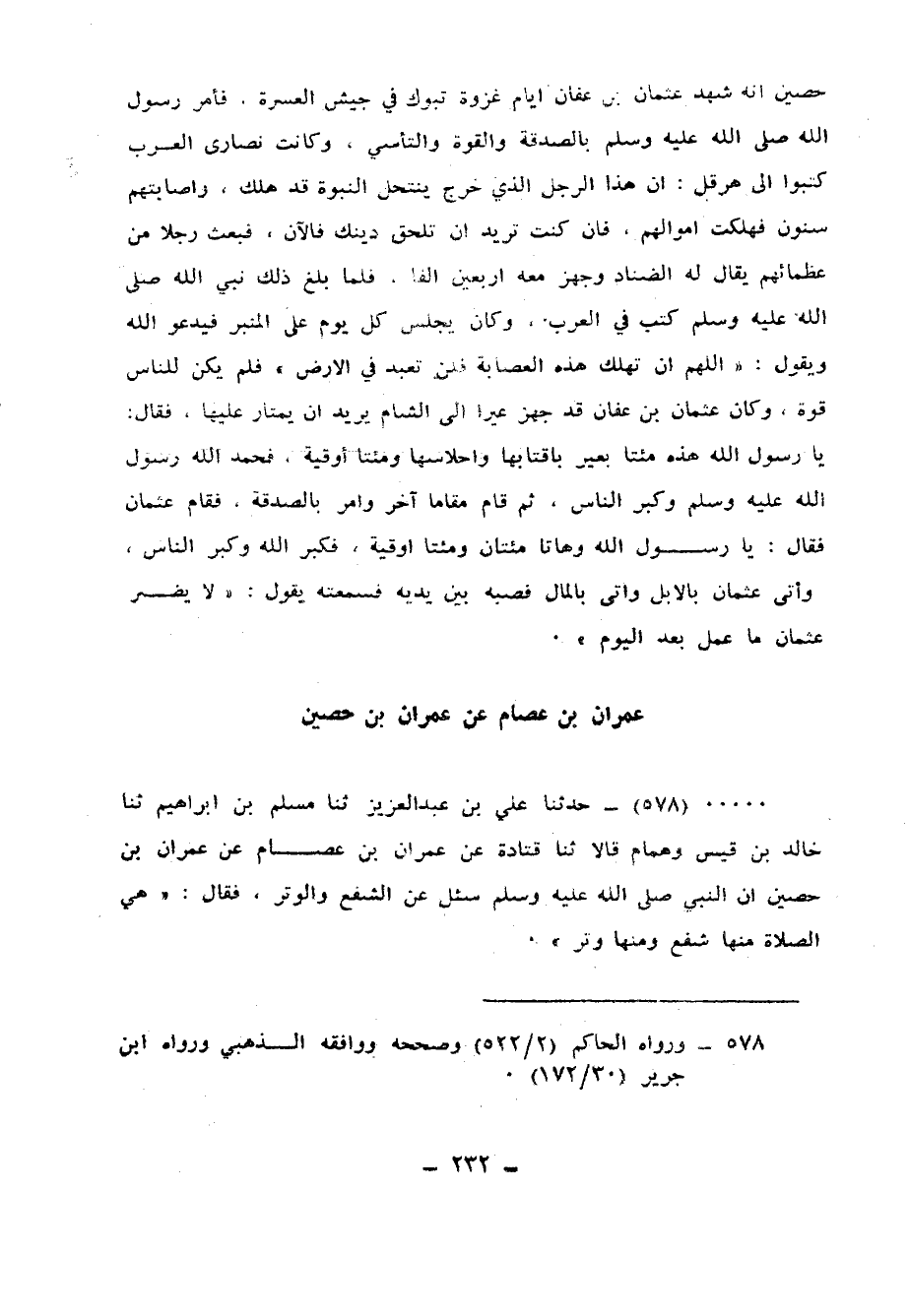 578 - حَدَّثَنَا عَلِيُّ بْنُ عَبْدِ الْعَزِيزِ، ثنا مُسْلِمُ بْنُ إِبْرَاهِيمَ، ثنا خَالِدُ بْنُ قَيْسٍ، وَهَمَّامٌ، قَالَا: ثنا قَتَادَةُ، عَنْ عِمْرَانَ بْنِ عِصَامٍ، عَنْ عِمْرَانَ بْنِ حُصَيْنٍ، أَنَّ النَّبِيَّ صَلَّى اللهُ عَلَيْهِ وَسَلَّمَ سُئِلَ عَنِ الشَّفْعِ وَالْوَتْرِ، فَقَالَ: «§هِي الصَّلَاةُ، مِنْهَا شَفْعٌ وَمِنْهَا وَتْرٌ»