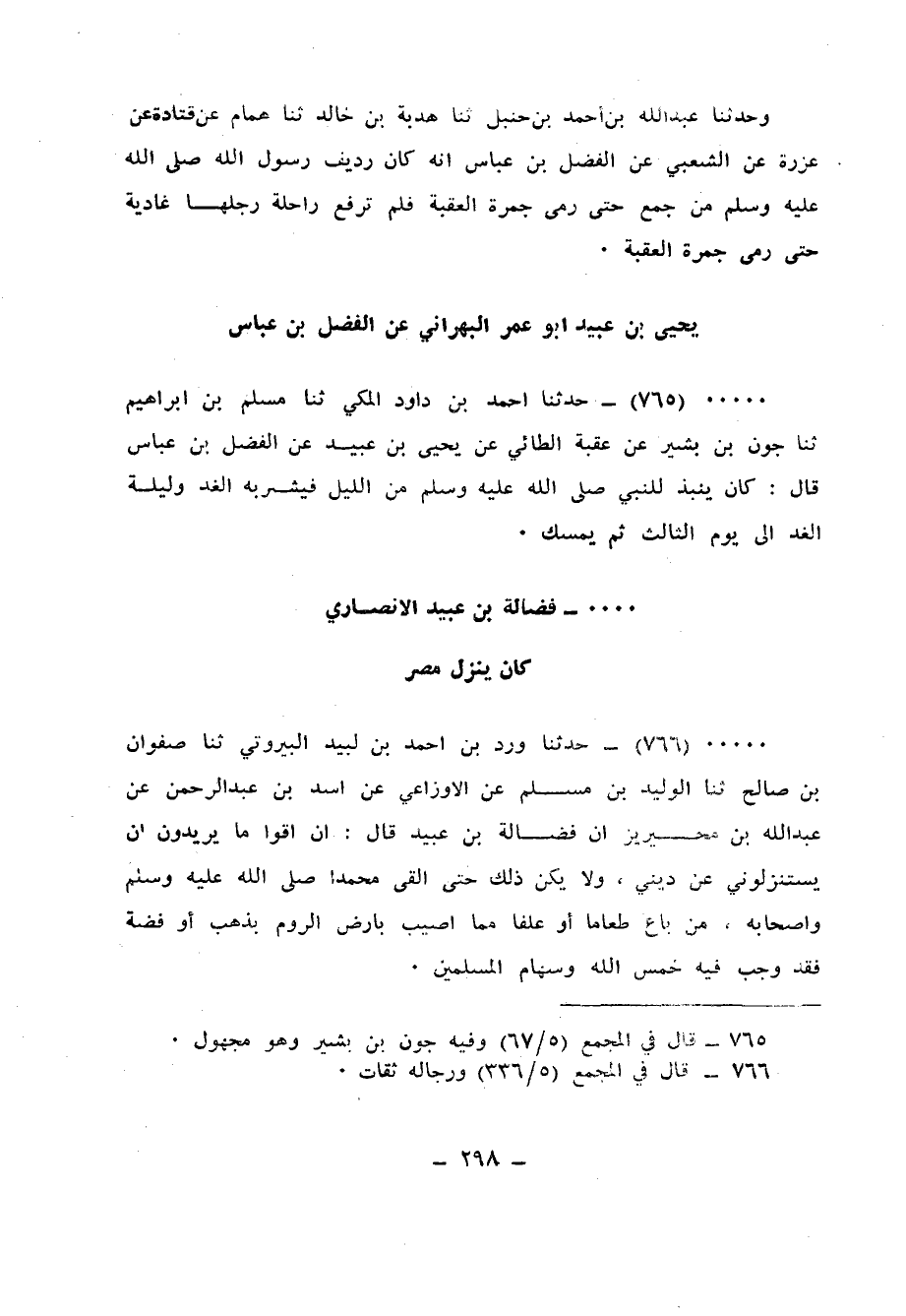 766 - حَدَّثَنَا وَرَدُ بْنُ أَحْمَدَ بْنِ لَبِيدٍ الْبَيْرُوتِيُّ، ثنا صَفْوَانُ بْنُ صَالِحٍ، ثنا الْوَلِيدُ بْنُ مُسْلِمٍ، عَنِ الْأَوْزَاعِيِّ، عَنْ أُسَيْدِ بْنِ عَبْدِ الرَّحْمَنِ، عَنْ عَبْدِ اللهِ بْنِ مُحَيْرِيزٍ، أَنَّ فَضَالَةَ بْنَ عُبَيْدٍ قَالَ: إِنَّ أَقْوَى مَا يُرِيدُونَ أَنْ يَسْتَنْزِلُونِي عَنْ دِينِي، وَلَا يَكُنْ ذَلِكَ حَتَّى أَلْقَى مُحَمَّدًا صَلَّى اللهُ عَلَيْهِ وَسَلَّمَ وَأَصْحَابَهُ: «§مَنْ بَاعَ طَعَامًا أَوْ عَلَفًا مِمَّا أُصِيبَ بِأَرْضِ الرُّومِ بِذَهَبٍ أَوْ فِضَّةٍ فَقَدْ وَجَبَ فِيهِ خُمْسُ اللهِ وَسِهَامُ الْمُسْلِمِينَ»