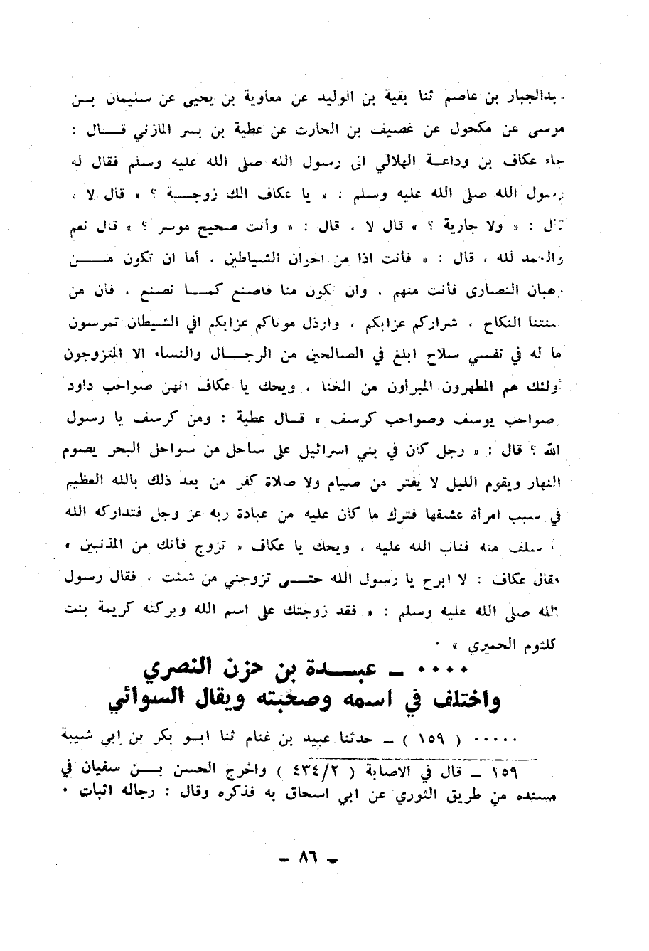 159 - حَدَّثَنَا عُبَيْدُ بْنُ غَنَّامٍ، ثنا أَبُو بَكْرِ بْنُ أَبِي شَيْبَةَ، ثنا أَبُو أُسَامَةَ، عَنِ الْأَعْمَشِ، عَنْ أَبِي إِسْحَاقَ، عَنْ عَبْدَةَ السُّوَائِيِّ قَالَ: لَغَطَ قَوْمٌ قُرْبَ النَّبِيِّ صَلَّى اللهُ عَلَيْهِ وَسَلَّمَ فَقَالَ بَعْضُ أَصْحَابِهِ: يَا رَسُولَ اللهِ، لَوْ بُعِثْتَ إِلَى هَؤُلَاءِ بَعْضَ مَنْ يَنْهَاهُمْ عَنْ هَذَا، فَقَالَ: «§لَوْ بُعِثْتُ إِلَيْهِمْ فَنَهَيْتُهُمْ أَنْ يَأْتُوا الْحَجُونَ لَأَتَاهُ بَعْضُهُمْ، وَإِنْ لَمْ يَكُنْ لَهُ بِهِ حَاجَةٌ»