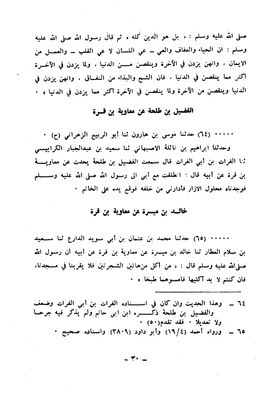 §الْفُضَيْلُ بْنُ طَلْحَةَ، عَنْ مُعَاوِيَةَ بْنِ قُرَّةَ