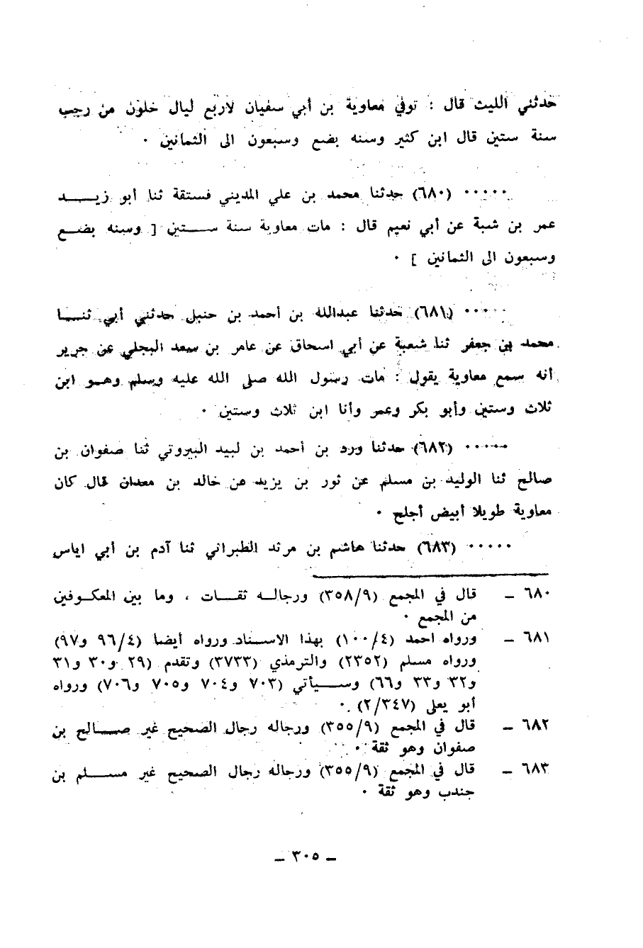 683 - حَدَّثَنَا هَاشِمُ بْنُ مَرْثَدٍ الطَّبَرَانِيُّ، ثنا آدَمُ بْنُ أَبِي إِيَاسٍ، ثنا ابْنُ أَبِي ذِئْبٍ، ثنا مُسْلِمُ بْنُ جُنْدُبٍ، عَنْ أَسْلَمَ، مَوْلَى عُمَرَ، قَالَ: «§قَدِمَ عَلَيْنَا مُعَاوِيَةُ وَهُوَ أَبْيَضُ النَّاسِ وَأَجْمَلُهُمْ»
