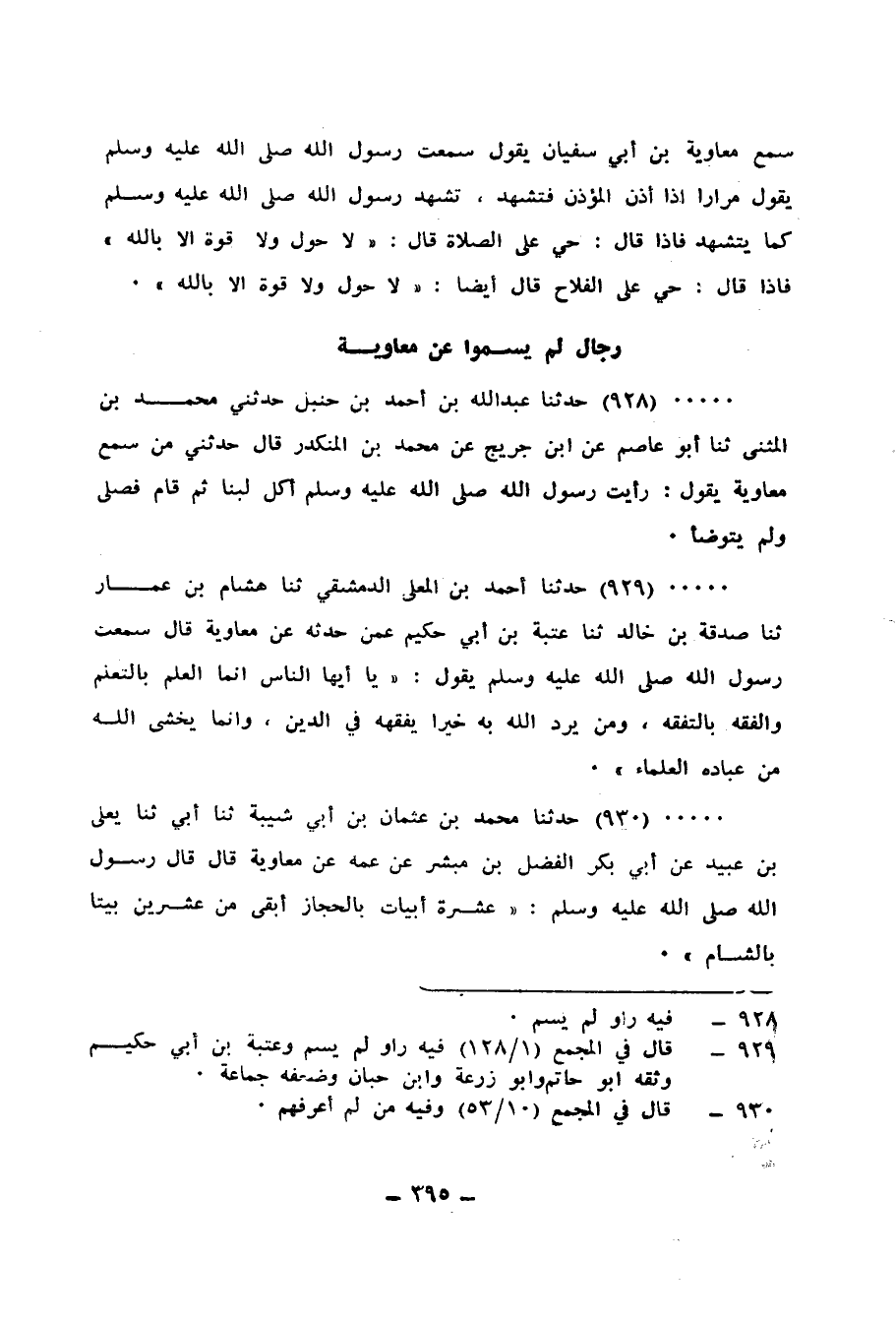 929 - حَدَّثَنَا أَحْمَدُ بْنُ الْمُعَلَّى الدِّمَشْقِيُّ، ثنا هِشَامُ بْنُ عَمَّارٍ، ثنا صَدَقَةُ بْنُ خَالِدٍ، ثنا عُتْبَةُ بْنُ أَبِي حَكِيمٍ، عَمَّنْ حَدَّثَهُ، عَنْ مُعَاوِيَةَ قَالَ: سَمِعْتُ رَسُولَ اللهِ صَلَّى اللهُ عَلَيْهِ وَسَلَّمَ يَقُولُ: «يَا أَيُّهَا النَّاسُ §إِنَّمَا الْعِلْمُ بِالتَّعَلُّمِ، وَالْفِقْهُ بِالتَّفَقُّهِ، وَمَنْ يُرِدِ اللهُ بِهِ خَيْرًا يُفَقِّهْهُ فِي الدِّينِ، وَإِنَّمَا يَخْشَى اللهَ مِنْ عِبَادِهِ الْعُلَمَاءُ»
