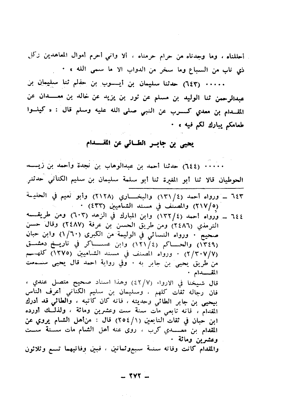 §يَحْيَى بْنُ جَابِرٍ الطَّائِيُّ، عَنِ الْمِقْدَامِ