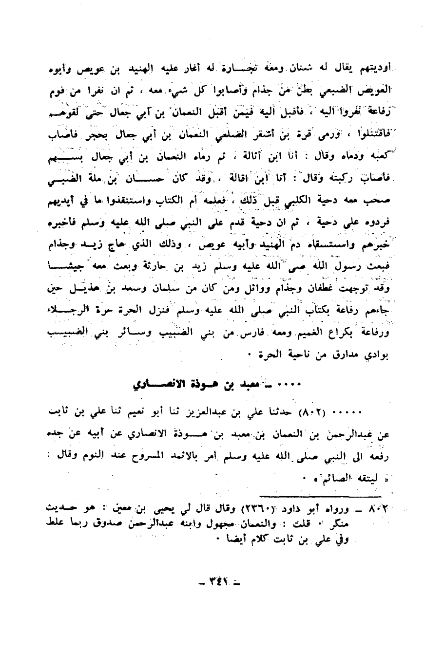 802 - حَدَّثَنَا عَلِيُّ بْنُ عَبْدِ الْعَزِيزِ، ثنا أَبُو نُعَيْمٍ، ثنا عَلِيُّ بْنُ ثَابِتٍ، عَنْ عَبْدِ الرَّحْمَنِ بْنِ النُّعْمَانِ بْنِ مَعْبَدِ بْنِ هَوْذَةَ الْأَنْصَارِيِّ، عَنْ أَبِيهِ، عَنْ جَدِّهِ، - رَفَعَهُ إِلَى النَّبِيِّ صَلَّى اللهُ عَلَيْهِ وَسَلَّمَ -: §أَمَرَ بِالْإِثْمِدِ الْمَسْرُوحِ عِنْدَ النَّوْمِ، وَقَالَ: «لِيَتَّقِهِ الصَّائِمُ»