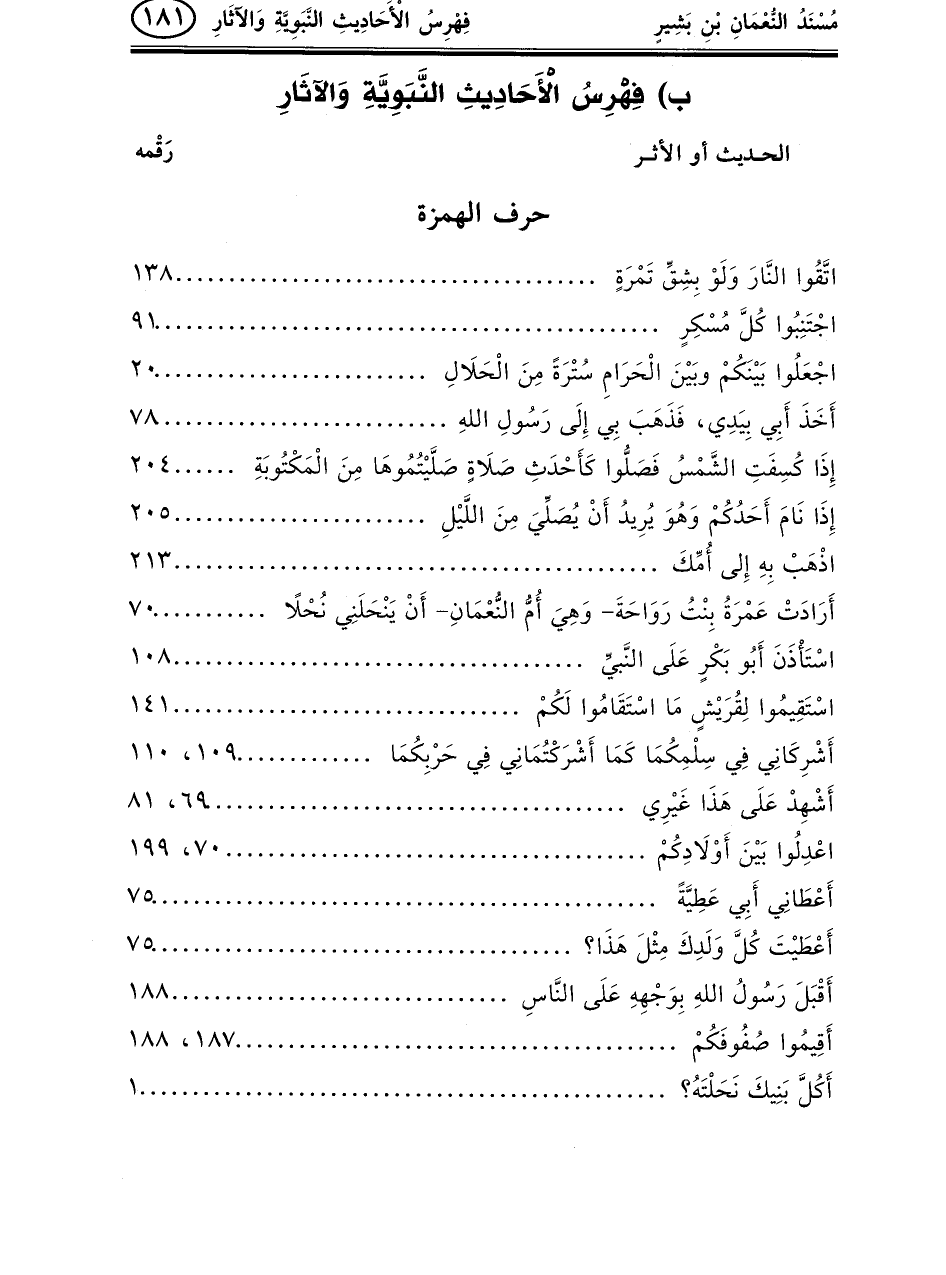 ب) فِهْرِسُ الأَْحَادِيثِ النَّبَوِيَّةِ وَالآثَارِ