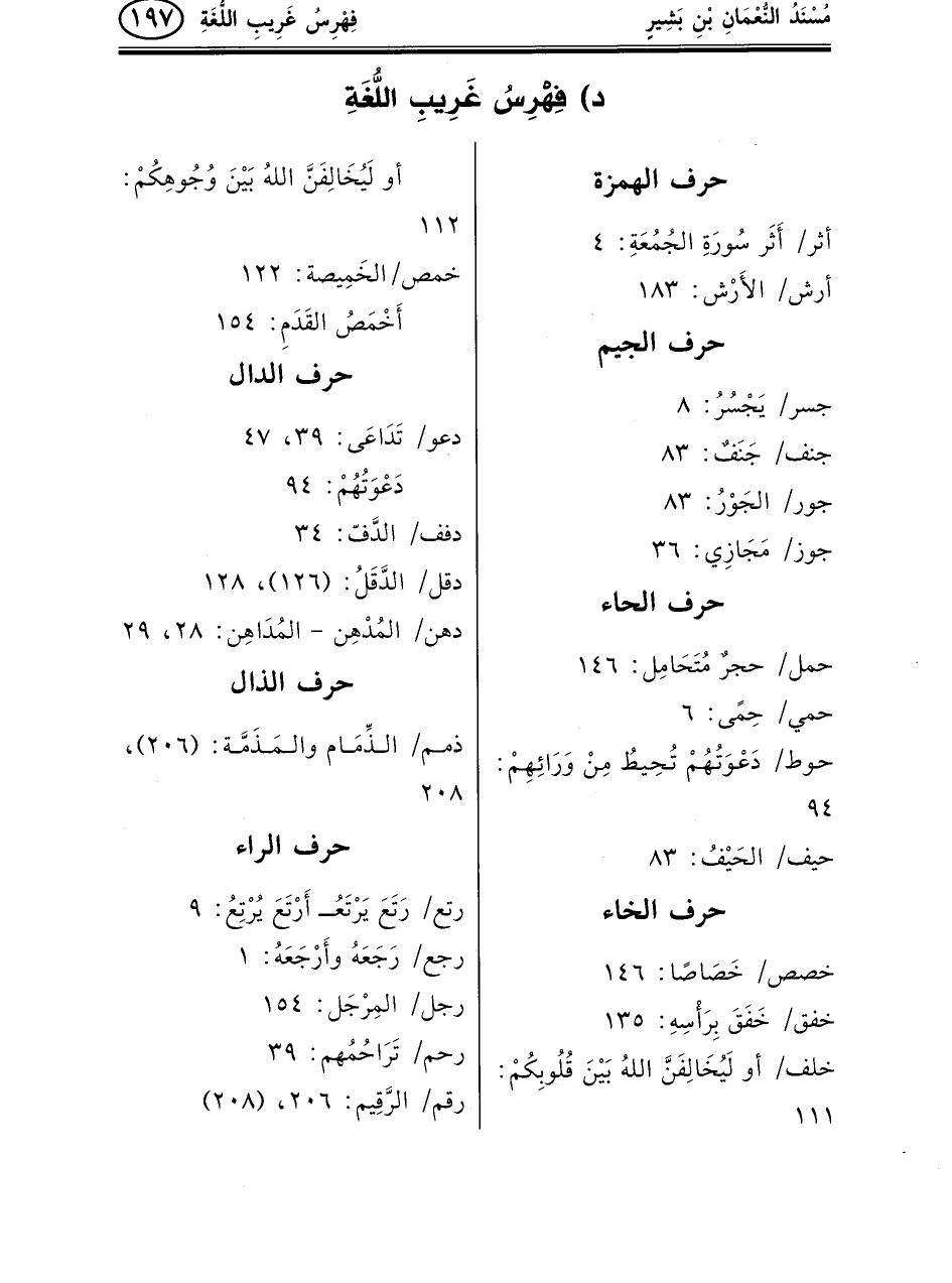 د) فِهْرِسُ غَرِيبِ اللُّغَةِ