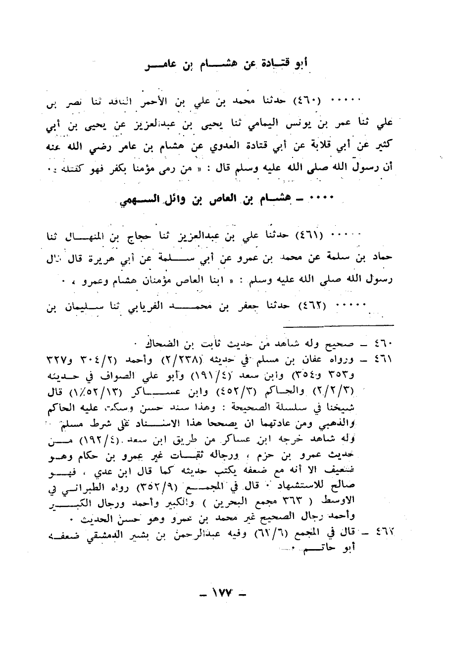 461 - حَدَّثَنَا عَلِيُّ بْنُ عَبْدِ الْعَزِيزِ، ثنا حَجَّاجُ بْنُ الْمِنْهَالِ، ثنا حَمَّادُ بْنُ سَلَمَةَ، عَنْ مُحَمَّدِ بْنِ عَمْرٍو، عَنْ أَبِي سَلَمَةَ، عَنْ أَبِي هُرَيْرَةَ قَالَ: قَالَ رَسُولُ اللهِ صَلَّى اللهُ عَلَيْهِ وَسَلَّمَ: «§ابْنَا الْعَاصِ مُؤْمِنَانِ هِشَامٌ وَعَمْرٌو»
