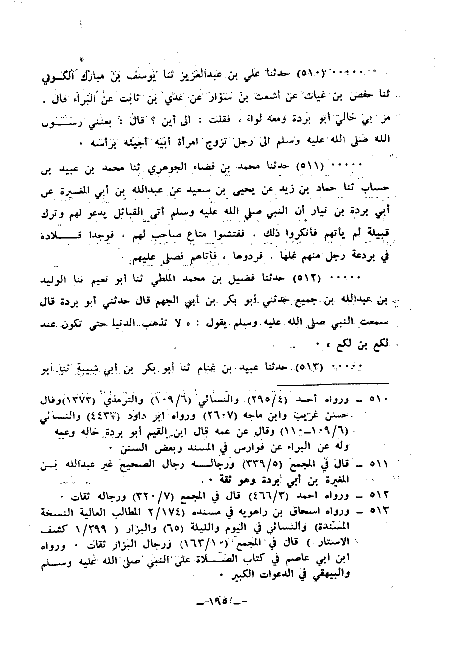 511 - حَدَّثَنَا مُحَمَّدُ بْنُ فَضَاءٍ الْجَوْهَرِيُّ، ثنا مُحَمَّدُ بْنُ عُبَيْدِ بْنِ حِسَابٍ، ثنا حَمَّادُ بْنُ زَيْدٍ، عَنْ يَحْيَى بْنِ سَعِيدٍ، عَنْ عَبْدِ اللهِ بْنِ أَبِي الْمُغِيرَةِ، عَنْ أَبِي بُرْدَةَ بْنِ نِيَارٍ: أَنَّ النَّبِيَّ صَلَّى اللهُ عَلَيْهِ وَسَلَّمَ «§أَتَى الْقَبَائِلَ يَدْعُو لَهُمْ وَتَرَكَ قَبِيلَةً لَمْ يِأْتِهِمْ فَأَنْكَرُوا ذَلِكَ، فَفَتَّشُوا مَتَاعَ صَاحِبٍ لَهُمْ فَوَجَدُوا قِلَادَةً فِي بَرْدَعَةِ رَجُلٍ مِنْهُمْ غَلَّهَا فَرَدُّوهَا فَأَتَاهُمْ فَصَلَّى عَلَيْهِمْ»