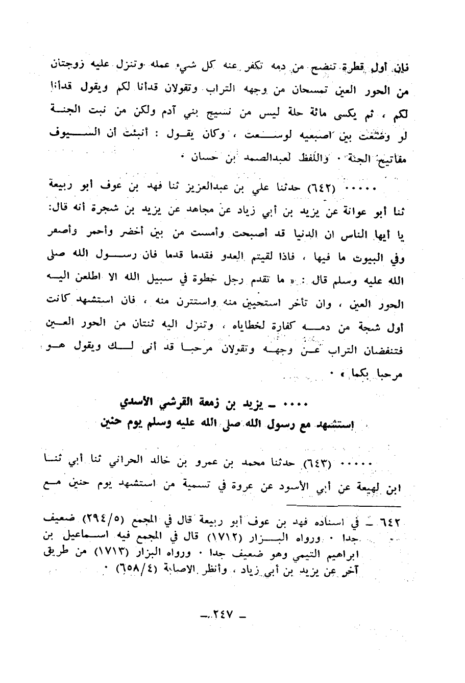 643 - حَدَّثَنَا مُحَمَّدُ بْنُ عَمْرِِو بْنِ خَالِدٍ الْحَرَّانِيُّ، ثَنَا أَبِي، ثَنَا ابْنُ لَهِيعَةَ، عَنْ أَبِي الْأَسْوَدِ، عَنْ عُرْوَةَ، فِي تَسْمِيَةِ §مَنْ اسْتُشْهِدَ يَوْمَ حُنَيْنٍ مَعَ رَسُولِ اللهِ صَلَّى اللهُ عَلَيْهِ وَسَلَّمَ مِنْ قُرَيْشٍ مِنْ بَنِي أَسَدِ بْنِ عَبْدِ الْعُزَّى يَزِيدُ بْنُ زَمْعَةَ هَكَذَا قَالَ ابْنُ لَهِيعَةَ: وَهُو عِنْدِي وَهْمٌ