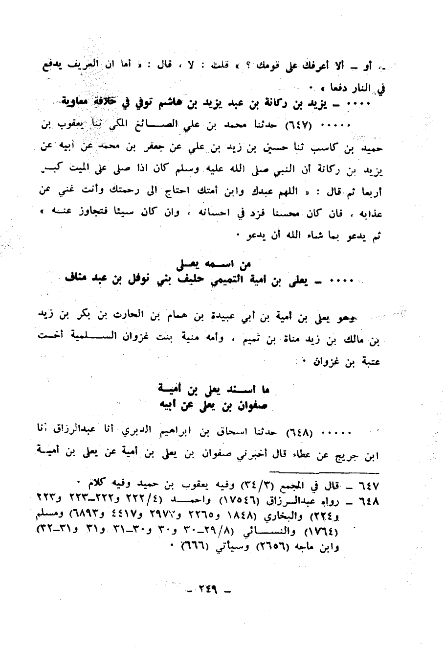 §يَعْلَى بْنُ أُمَيَّةَ التَّمِيمِيُّ حَلِيفُ بَنِي نَوْفَلِ بْنِ عَبْدٍ مَنَافٍ وَهُو يَعْلَى بْنُ أُمَيَّةَ بْنِ أَبِي عُبَيْدَةَ بْنِ هَمَّامِ بْنِ الْحَارِثِ بْنِ بَكْرِ بْنِ زَيْدِ بْنِ مَالِكِ بْنِ زَيْدٍ مَنَاةَ بْنِ تَمِيمٍ، وَأُمُّهُ مُنْيَةُ بِنْتُ غَزْوَانَ السُّلَمِيَّةُ أُخْتُ عُتْبَةَ بْنِ غَزْوَانَ مَا أَسْنَد يَعْلَى بْن أُمَيَّة صَفْوَانُ بْنُ يَعْلَى، عَنْ أَبِيهِ