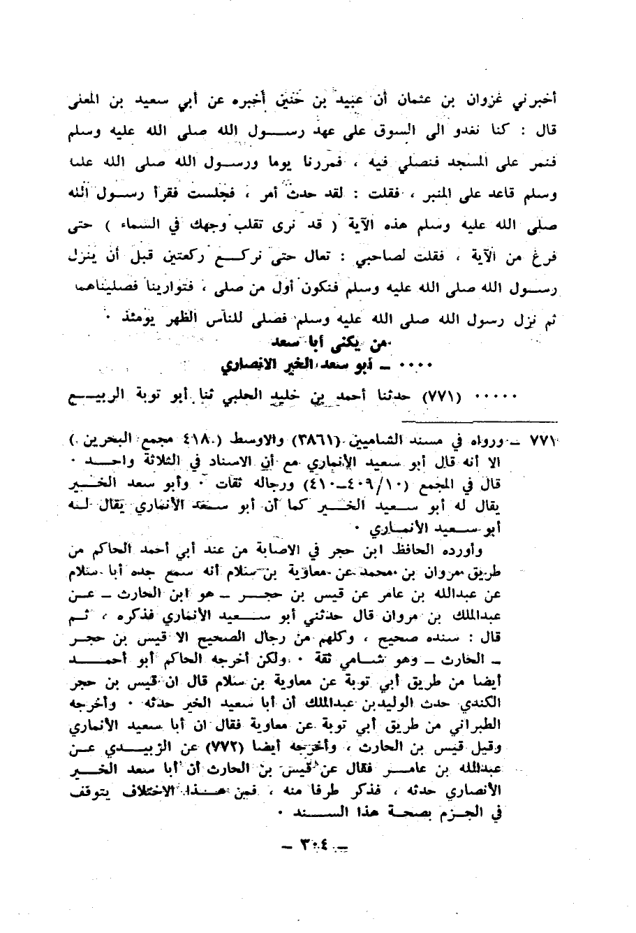 771 - حَدَّثَنَا أَحْمَدُ بْنُ خُلَيْدِ الْحَلَبِيُّ، ثنا أَبُو تَوْبَةَ الرَّبِيعُ بْنُ نَافِعٍ، ثنا مُعَاوِيَةُ بْنُ سَلَّامٍ، عَنْ زَيْدِ بْنِ سَلَّامٍ، أَنَّهُ سَمِعَ أَبَا سَلَّامٍ، يَقُولُ: حَدَّثَنِي عَبْدُ اللهِ بْنُ عَامِرٍ، أَنَّ قَيْسَ بْنَ الْحَارِثِ الْكِنْدِيَّ، حَدَّثَ الْوَلِيدَ، أَنَّ أَبَا سَعْدٍ الْأَنْصَارِيَّ، حَدَّثَهُ أَنَّ رَسُولَ اللهِ صَلَّى اللهُ عَلَيْهِ وَسَلَّمَ قَالَ: «إِنَّ §رَبِّي وَعَدَنِي أَنْ يُدْخِلَ الْجَنَّةَ مِنْ أُمَّتِي سَبْعِينَ أَلْفًا بِغَيْرِ حِسَابٍ، وَيُشَفِّعَ كُلَّ أَلْفٍ لِسَبْعِينَ أَلْفًا، ثُمَّ يَحْثِي رَبِّي ثَلَاثَ حَثَيَاتٍ بِكَفَّيْهِ» ، قَالَ قَيْسٌ: فَقُلْتُ لِأَبِي سَعْدٍ: أَنْتَ سَمِعْتَ هَذَا مِنْ رَسُولِ اللهِ صَلَّى اللهُ عَلَيْهِ وَسَلَّمَ، قَالَ: نَعَمْ، بِأُذُنِي وَوَعَاهُ قَلْبِي، قَالَ أَبُو سَعْدٍ: قَالَ رَسُولُ اللهِ صَلَّى اللهُ عَلَيْهِ وَسَلَّمَ: «ذَاكَ إِنْ شَاءَ اللهُ مُسْتَوْعِبٌ مُهَاجِرِي أُمَّتِي وَيُوَفِّي اللهُ مِنْ أَعْرَابِنَا»