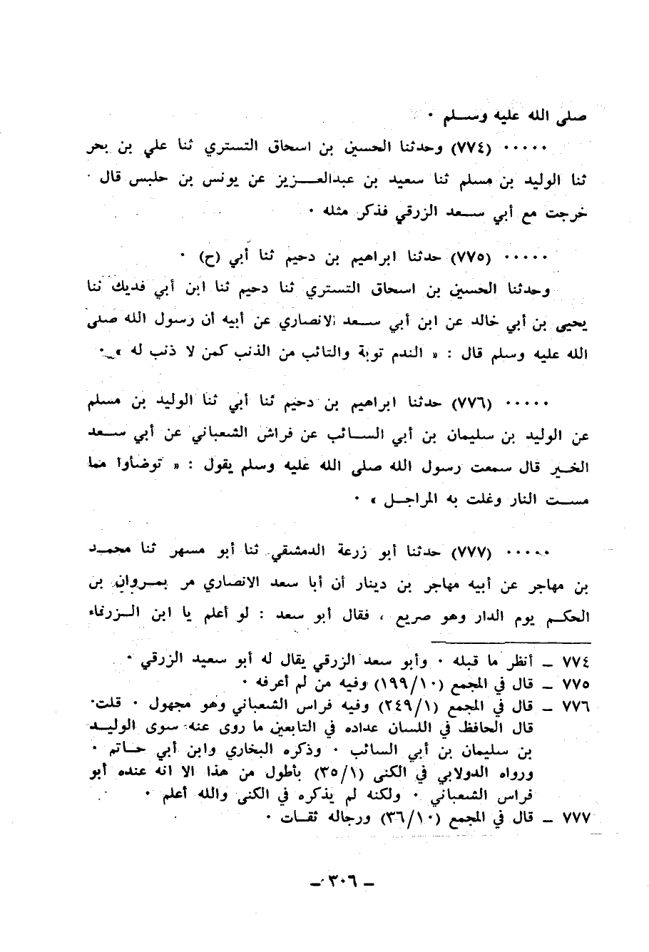 776 - حَدَّثَنَا إِبْرَاهِيمُ بْنُ دُحَيْمٍ، ثنا أَبِي، ثنا الْوَلِيدُ بْنُ مُسْلِمٍ، عَنِ الْوَلِيدِ بْنِ سُلَيْمَانَ بْنِ أَبِي السَّائِبِ، عَنْ فِرَاسِ الشَّعْبَانِيِّ، عَنْ أَبِي سَعْدِ الْخَيْرِ، قَالَ: سَمِعْتُ رَسُولَ اللهِ صَلَّى اللهُ عَلَيْهِ وَسَلَّمَ، يَقُولُ: «§تَوَضَّئُوا مِمَّا مَسَّتِ النَّارَ وَغَلَتْ بِهِ الْمَرَاجِلُ»