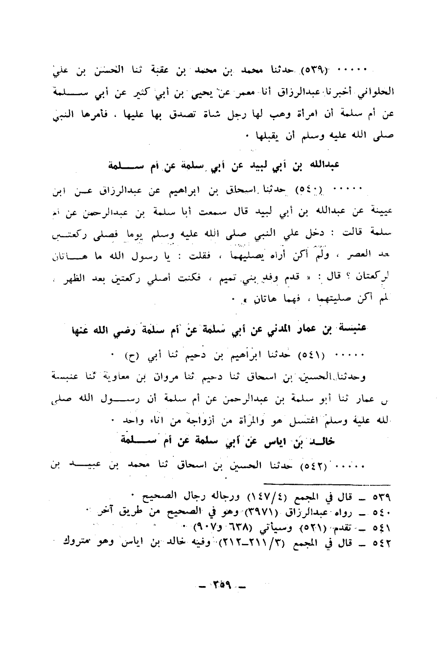 540 - حَدَّثَنَا إِسْحَاقُ بْنُ إِبْرَاهِيمَ، عَنْ عَبْدِ الرَّزَّاقِ، عَنِ ابْنِ عُيَيْنَةَ، عَنْ عَبْدِ اللهِ بْنِ أَبِي لَبِيدٍ، قَالَ: سَمِعْتُ أَبَا سَلَمَةَ بْنَ عَبْدِ الرَّحْمَنِ، عَنْ أُمِّ سَلَمَةَ، قَالَتْ: دَخَلَ عَلَيَّ النَّبِيُّ صَلَّى اللهُ عَلَيْهِ وَسَلَّمَ يَوْمًا، فَصَلَّى رَكْعَتَيْنِ بَعْدَ الْعَصْرِ، وَلَمْ أَكُنْ أَرَاهُ يُصَلِّيهِمَا فَقُلْتُ: يَا رَسُولَ اللهِ مَا هَاتَانِ الرَّكْعَتَانِ، قَالَ: «§قَدِمَ وَفْدُ بَنِي تَمِيمٍ، فَكُنْتُ أُصَلِّي رَكْعَتَيْنِ بَعْدَ الظُّهْرِ، فَلَمْ أَكُنْ صَلَّيْتُهُمَا فَهُمَا هَاتَانِ»
