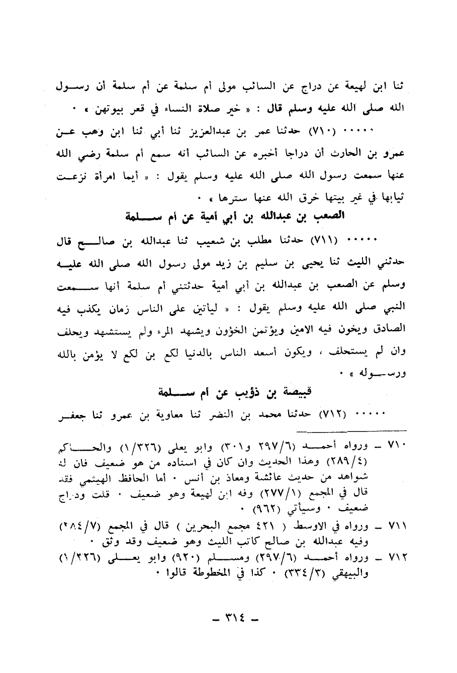 711 - حَدَّثَنَا مُطَّلِبُ بْنُ شُعَيْبٍ، ثنا عَبْدُ اللهِ بْنُ صَالِحٍ، قَالَ: حَدَّثَنِي اللَّيْثُ، ثنا يَحْيَى بْنُ سُلَيْمِ بْنِ زَيْدٍ مَوْلَى رَسُولِ اللهِ صَلَّى اللهُ عَلَيْهِ وَسَلَّمَ، عَنِ الصَّعْبِ بْنِ عَبْدِ اللهِ بْنِ أَبِي أُمَيَّةَ، حَدَّثَتْنِي أُمُّ سَلَمَةَ، أَنَّهَا سَمِعَتِ النَّبِيَّ صَلَّى اللهُ عَلَيْهِ وَسَلَّمَ يَقُولُ: «§لَيَأْتِيَنَّ عَلَى النَّاسِ زَمَانٌ يَكْذِبُ فِيهِ الصَّادِقُ، وَيَصْدُقُ فِيهِ الْكَاذِبُ، وَيَخُونُ فِيهِ الْأَمِينُ، وَيُؤْتَمَنُ الْخَؤُونُ، وَيَشْهَدُ الْمَرْءُ وَلَمْ يُسْتَشْهَدْ، وَيَحْلِفُ وَإِنْ لَمْ يُسْتَحْلَفْ، وَيَكُونُ أَسْعَدَ النَّاسِ بِالدُّنْيَا لُكَعُ بْنُ لُكَعٍ، لَا يُؤْمِنُ بِاللهِ وَرَسُولِهِ»
