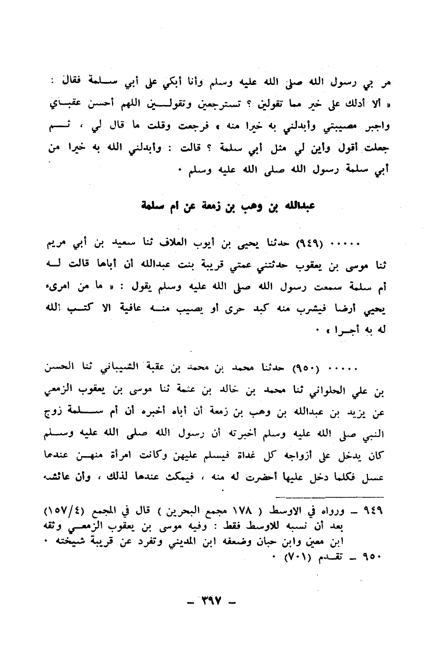 §عَبْدُ اللهِ بْنُ وَهْبِ بْنِ زَمْعَةَ، عَنْ أُمِّ سَلَمَةَ