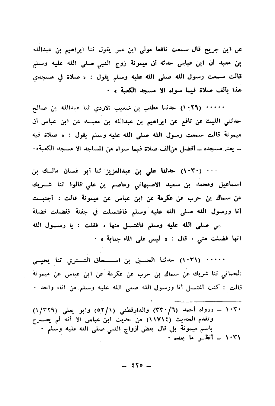 1029 - حَدَّثَنَا مُطَّلِبُ بْنُ شُعَيْبٍ الْأَزْدِيُّ، ثنا عَبْدُ اللهِ بْنُ صَالِحٍ، حَدَّثَنِي اللَّيْثُ، عَنْ نَافِعٍ، عَنْ إِبْرَاهِيمَ بْنِ عَبْدِ اللهِ بْنِ مَعْبَدٍ، عَنِ ابْنِ عَبَّاسٍ، أَنَّ مَيْمُونَةَ، قَالَتْ: سَمِعْتُ رَسُولَ اللهِ صَلَّى اللهُ عَلَيْهِ وَسَلَّمَ يَقُولُ: «§صَلَاةٌ فِيهِ، يَعْنِي مَسْجِدَهُ، أَفْضَلَ مِنْ أَلْفُ صَلَاةٍ فِيمَا سِوَاهُ مِنَ الْمَسَاجِدِ إِلَّا مَسْجِدَ الْكَعْبَةِ»