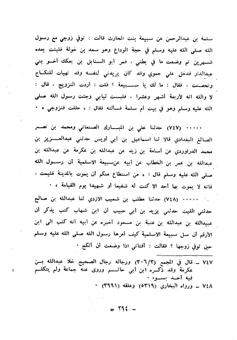 748 - حَدَّثَنَا مُطَّلِبُ بْنُ شُعَيْبٍ الْأَزْدِيُّ، ثنا عَبْدُ اللهِ بْنُ صَالِحٍ، حَدَّثَنِي اللَّيْثُ، حَدَّثَنِي يَزِيدُ بْنُ أَبِي حَبِيبٍ، أَنَّ ابْنَ شِهَابٍ، كَتَبَ يَذْكُرُ أَنَّ عُبَيْدَ اللهِ بْنَ عَبْدِ اللهِ بْنِ عُتْبَةَ بْنِ مَسْعُودٍ، أَخْبَرَهُ عَنْ أَبِيهِ، أَنَّهُ: كَتَبَ إِلَى ابْنِ الْأَرْقَمِ أَنْ سَلْ سُبَيْعَةَ الْأَسْلَمِيَّةَ: كَيْفَ أَمَرَهَا رَسُولُ اللهِ صَلَّى اللهُ عَلَيْهِ وَسَلَّمَ حِينَ تُوُفِّيَ زَوْجُهَا؟ فَقَالَتْ: «أَفْتَانِي §إِذَا وَضَعْتُ أَنْ أَنْكِحَ»