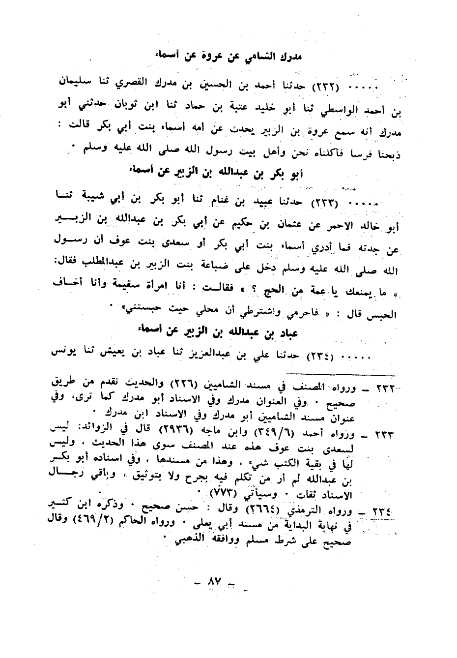 §عَبَّادُ بْنُ عَبْدِ اللهِ بْنِ الزُّبَيْرِ، عَنْ أَسْمَاءَ