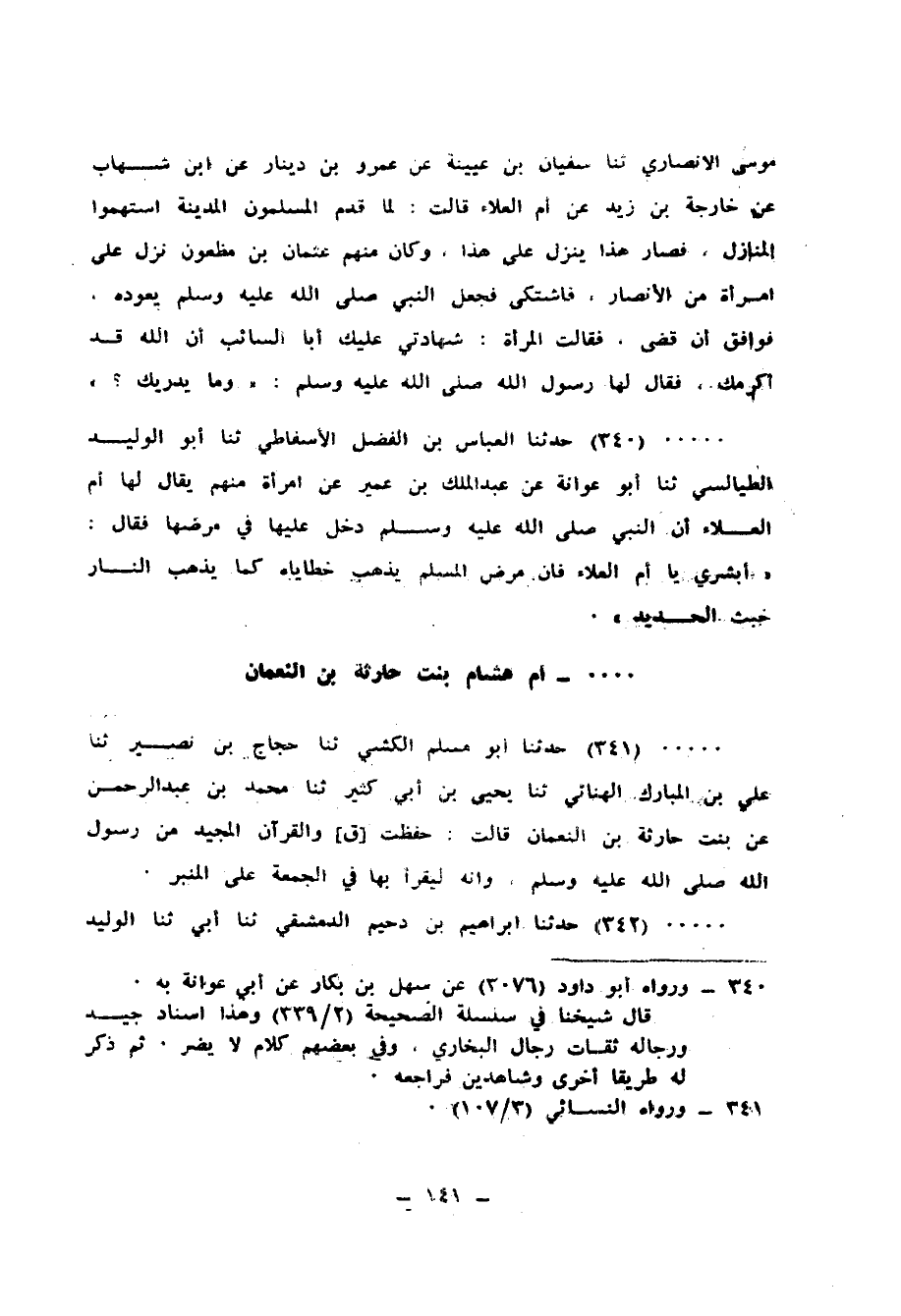 340 - حَدَّثَنَا الْعَبَّاسُ بْنُ الْفَضْلِ الْأَسْفَاطِيُّ، ثنا أَبُو الْوَلِيدِ الطَّيَالِسِيُّ، ثنا أَبُو عَوَانَةَ، عَنْ عَبْدِ الْمَلِكِ بْنِ عُمَيْرٍ، عَنِ امْرَأَةٍ مِنْهُمْ يُقَالُ لَهَا أُمُّ الْعَلَاءِ: أَنَّ النَّبِيَّ صَلَّى اللهُ عَلَيْهِ وَسَلَّمَ دَخَلَ عَلَيْهَا فِي مَرَضِهَا، فَقَالَ: «أَبْشِرِي يَا أُمَّ الْعَلَاءِ، فَإِنَّ» §مَرَضَ الْمُسْلِمِ يُذْهِبُ خَطَايَاهُ، كَمَا يُذْهِبُ النَّارُ خَبَثَ الْحَدِيدِ "