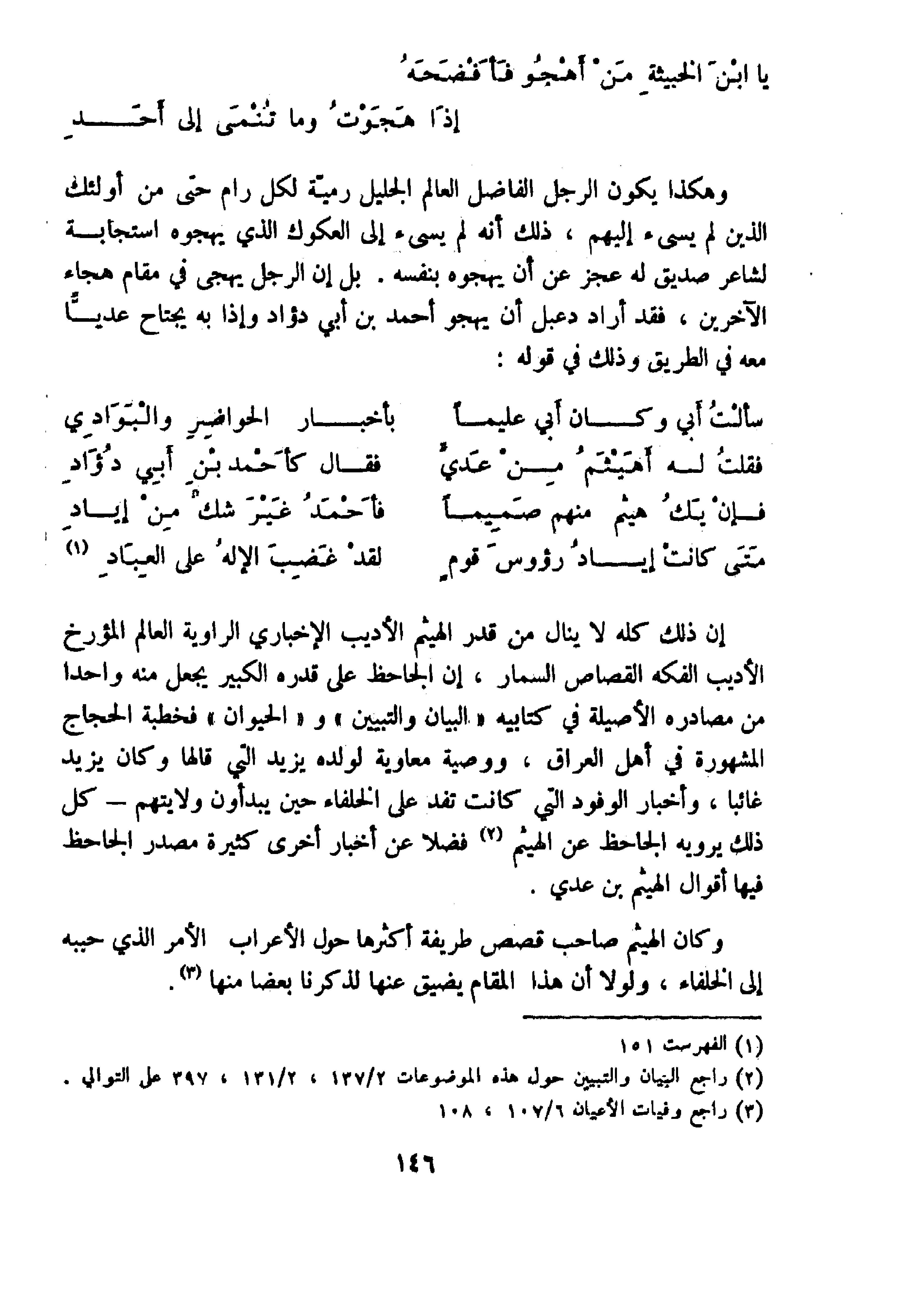 والجاحظ في عباراته السابقة يوضح للقارئ أن كتابه اعتمد على القرآن الكريم والحديث الشريف والشعر العربي والأمثال الشائعة كمصدر من مصادره.