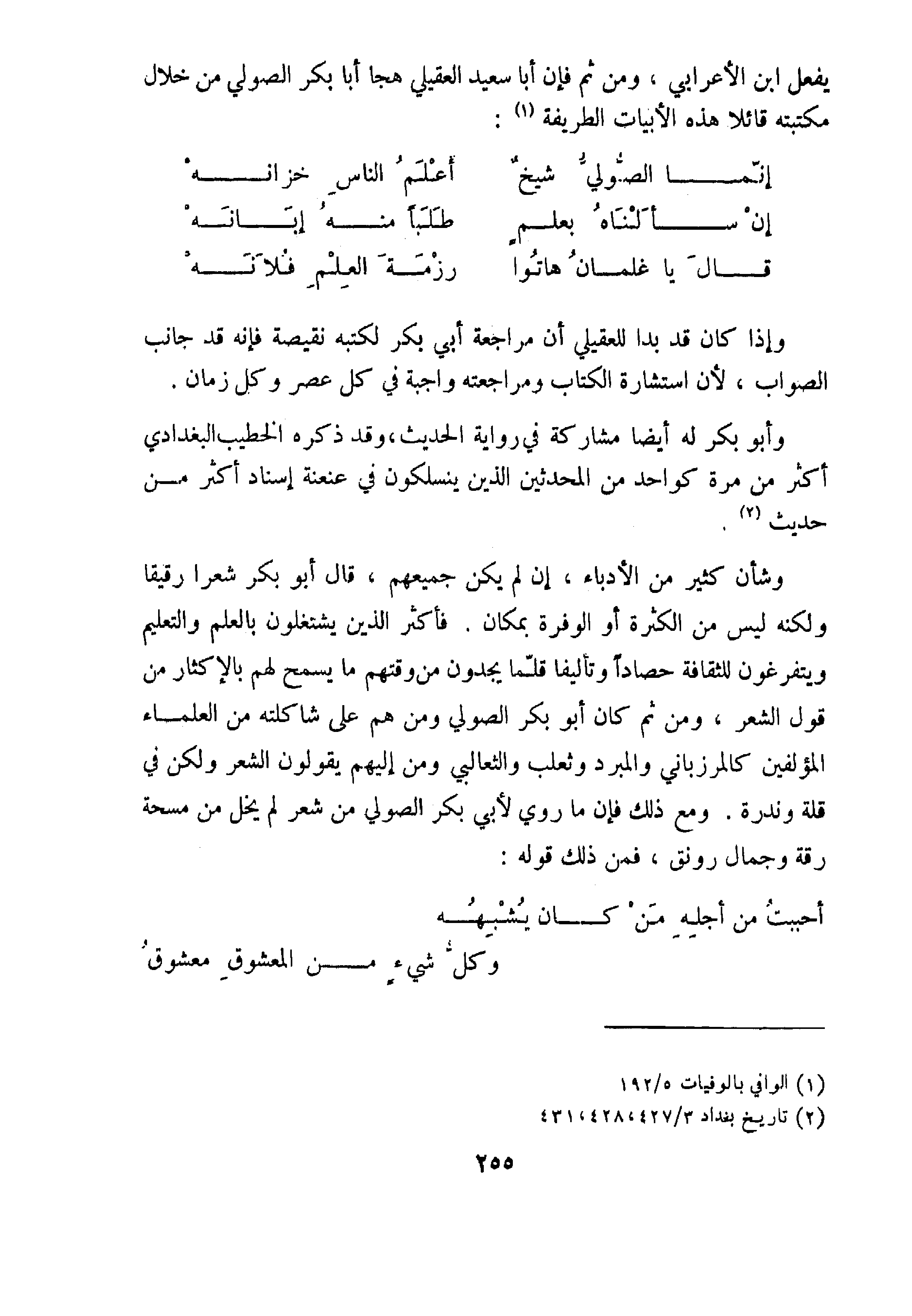 الصاحب إذا -وقد عرف بالمبالغة الشديدة- بالغ في الإقلال من شأن كتاب العقد الفريد، اللهم إلا إذا كان قد لاحظ على الكتاب ما لاحظناه نحن قبل قليل، وهو اغتصابه منهج عيون الأخبار، وما أظنه فطن إلى ذلك وإلا فما كان يفوته أن يذكر ذلك.