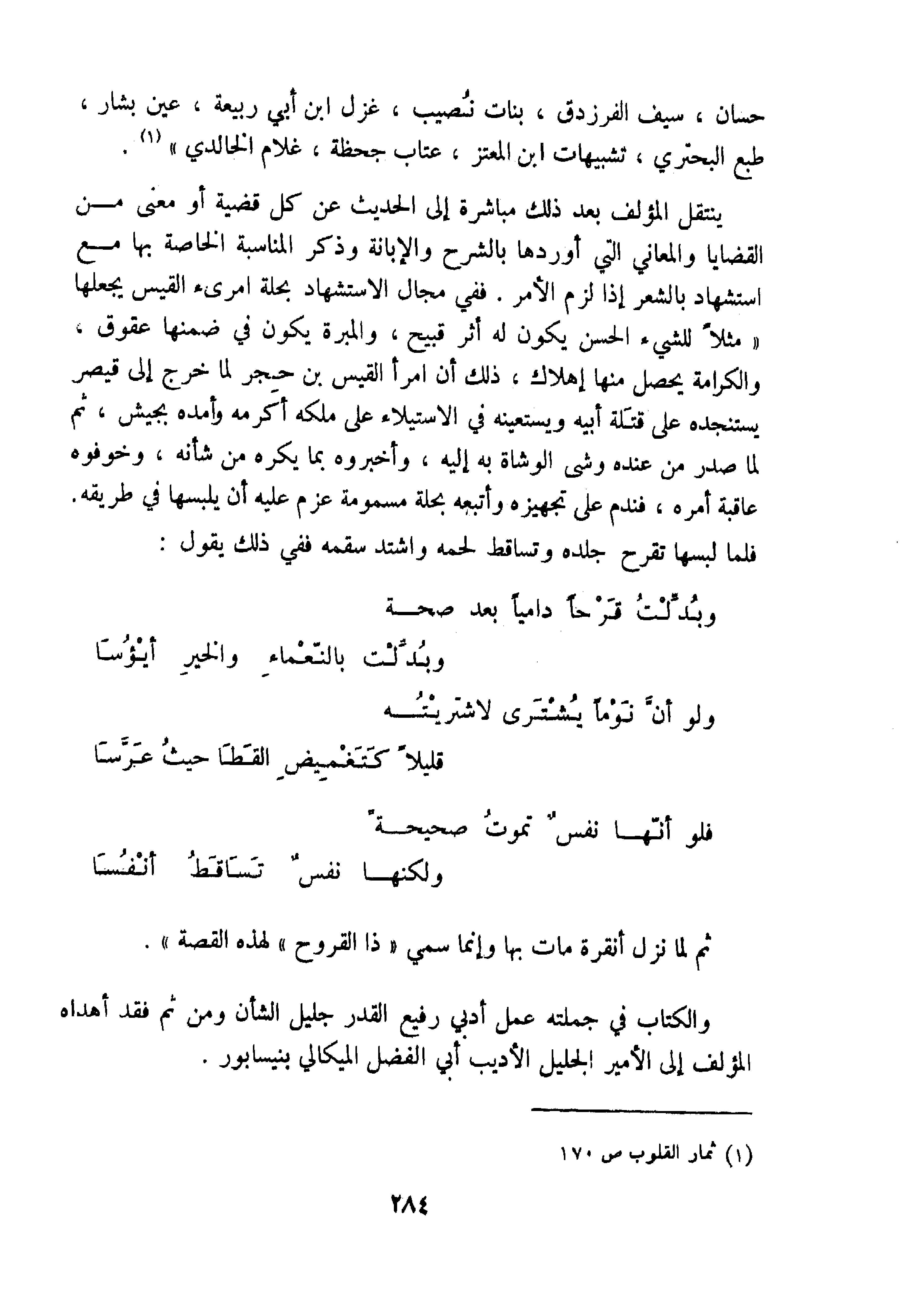 سادسًا: ويضم كتاب المجالس نماذج رائعة من عيون الشعر العربي لشعراء ممتازين موهوبين لشعراء مثل حسان بن ثابت، والنابغة الجعدي، والكميت، وابن هرمة، والحسين بن مطير، وقيس بن ذريح صاحب لبنى، وعروة بن حزام، ثم هو يورد بعد ذلك نماذج من الشعر الرفيع لشعراء غير مشهورين مثل خارجة بن فليح المكي، أو عبيد الله بن عبد الله بن عتبة، أو عبيد الله بن شبيب، وكل قصيدة أو مقطوعة يجعل منها أبو العباس منطلقًا لدرسه. هذا فضلًا عن عشرات المقطوعات الشعرية الجيدة النفيسة لشعراء عاشوا في مختلف الأزمنة حتى زمان