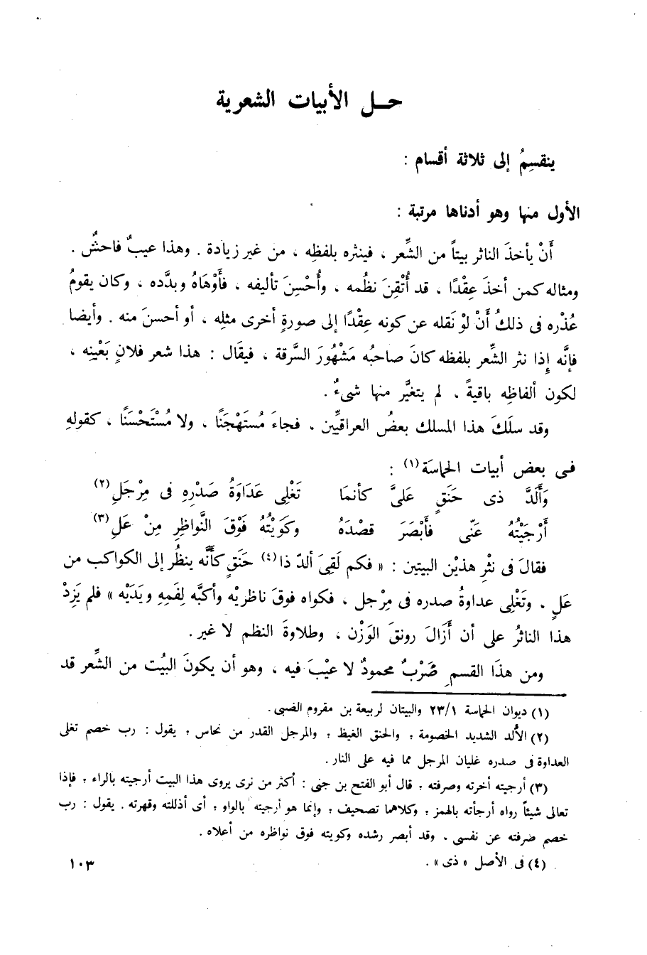 وقد سلك هذا المسلك بعض العراقيين، فجاء مستهجنًا لا مستحسنًا؛ كقوله في بعض أبيات الحماسة1: