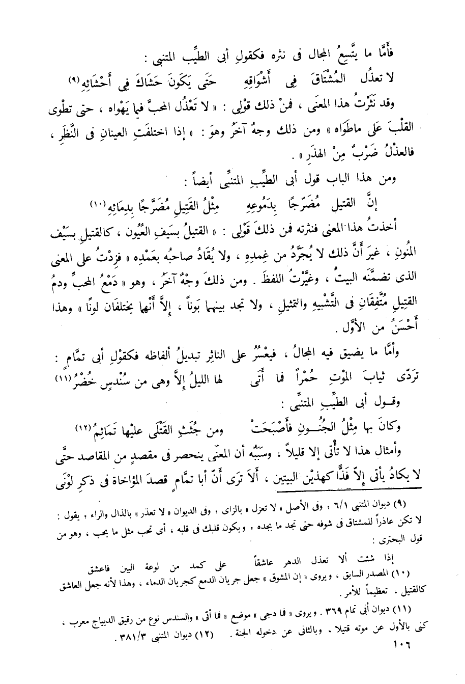 1 ديوان المتنبي 1/ 6، وفي الأصل "لا تعزل" بالزاي، وفي الديوان "لا تعذر" بالذال والراء، يقول: لا تكن عاذرًا للمشتاق في شوقه حتى تجد ما يجده، ويكون قلبك في قلبه، أي: تحب مثل ما يحب، وهو من قول البحتري:
