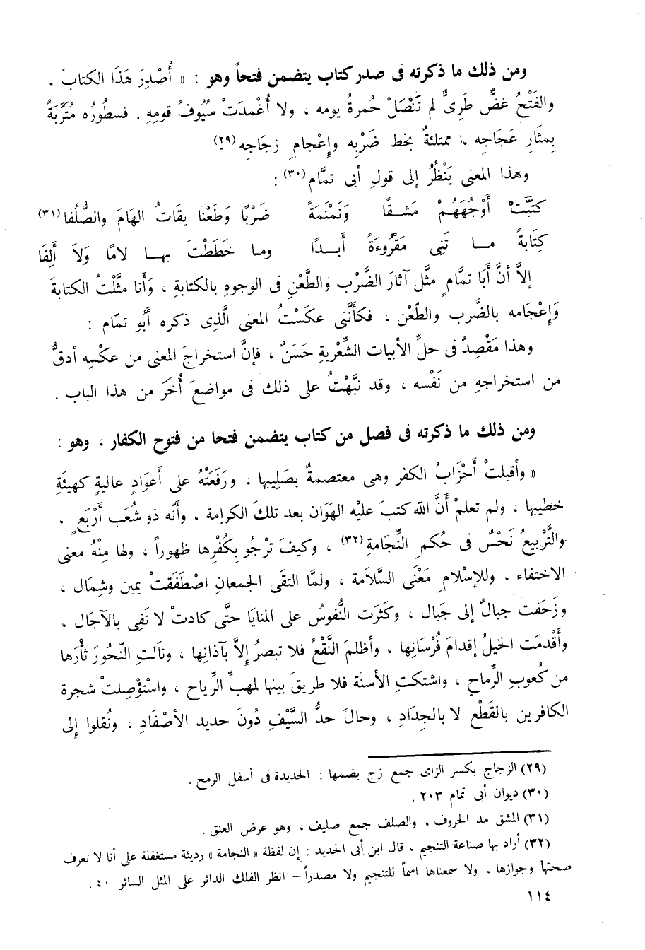 4 أراد بها صناعة التنجيم، قال ابن أبي الحديد: إن لفظة "النجامة" رديئة مستغفلة على أنَّا لا نعرف صحتها وجوازها، ولا سمعناها اسمًا للتنجيم ولا مصدرًا -انظر الفلك الدائر على المثل السائر 40.