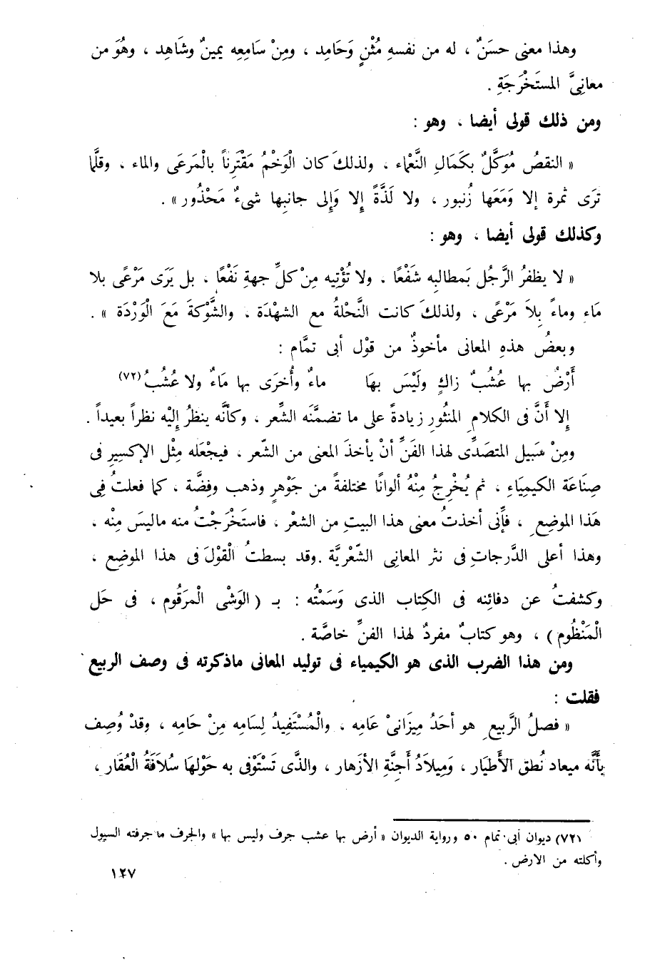 ومن هذا الضرب الذي هو الكيمياء في توليد المعاني ما ذكرته في وصف الربيع فقلت: