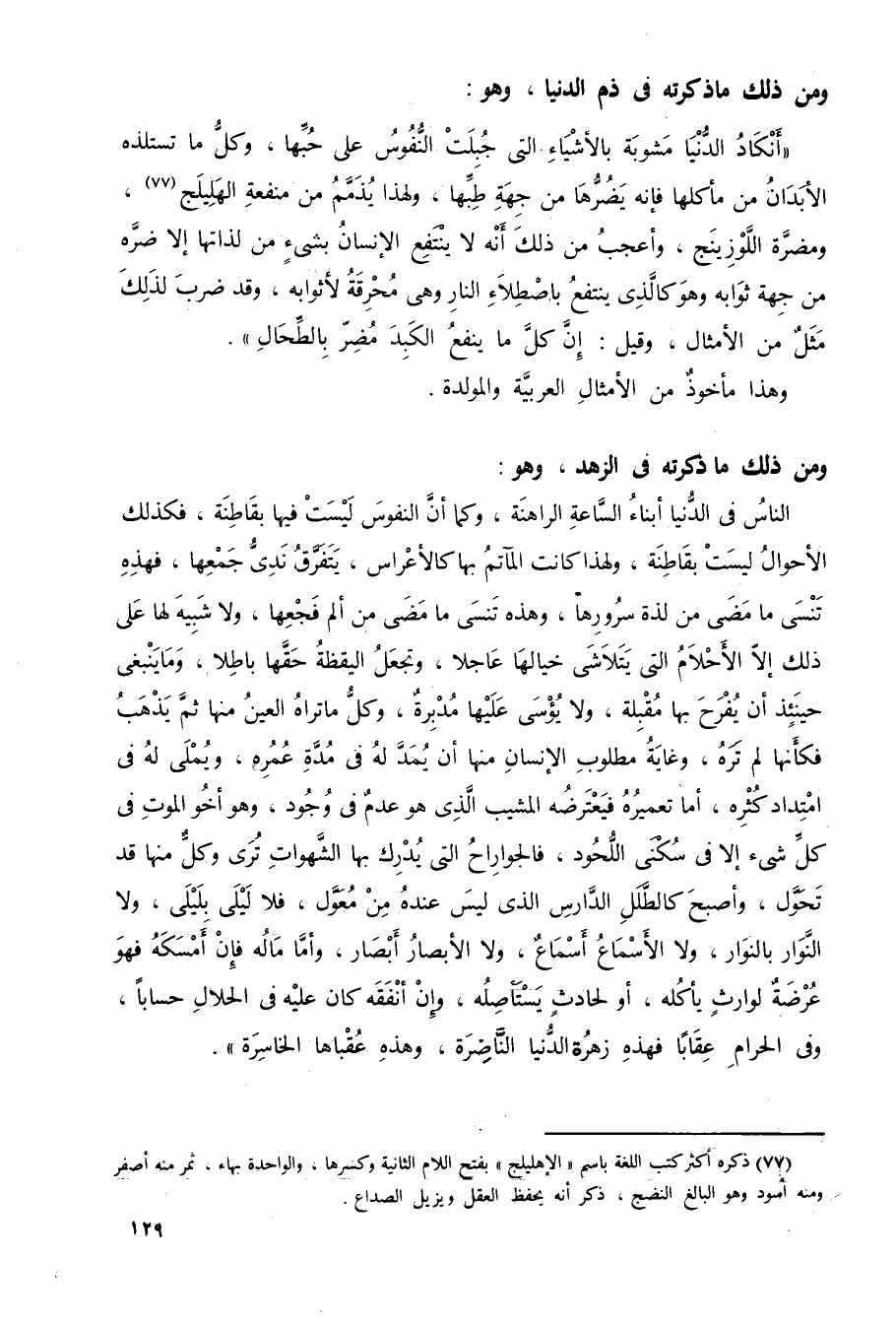 ومن ذلك ما ذكرته في الزهد، وهو: