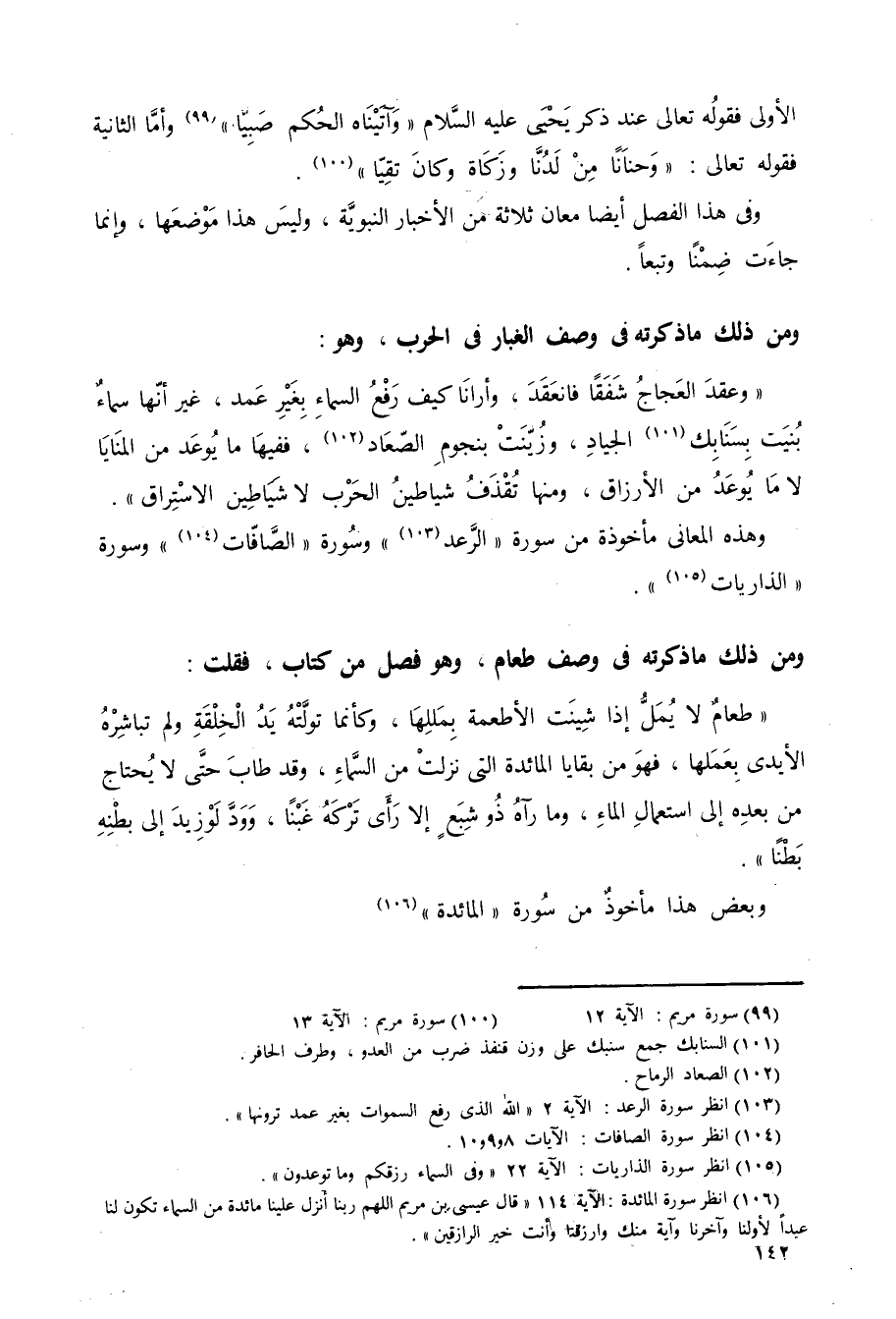 الأولى فقوله تعالى عند ذكر يحيى -عليه السلام: {وَآتَيْنَاهُ الْحُكْمَ صَبِيًّا} 1 وأما الثانية: فقوله تعالى: {وَحَنَانًا مِنْ لَدُنَّا وَزَكَاةً وَكَانَ تَقِيًّا} 2.