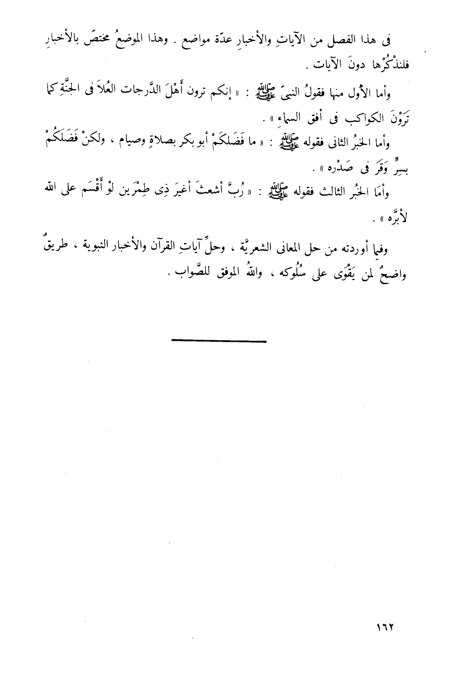 وأما الخبر الثاني: فقوله -صلى الله عليه وسلم: "ما فَضَلَكُم أبو بكر بصلاةٍ ولا صيامٍ, ولكن فَضَلَكم بسرٍّ وقر في صدره".