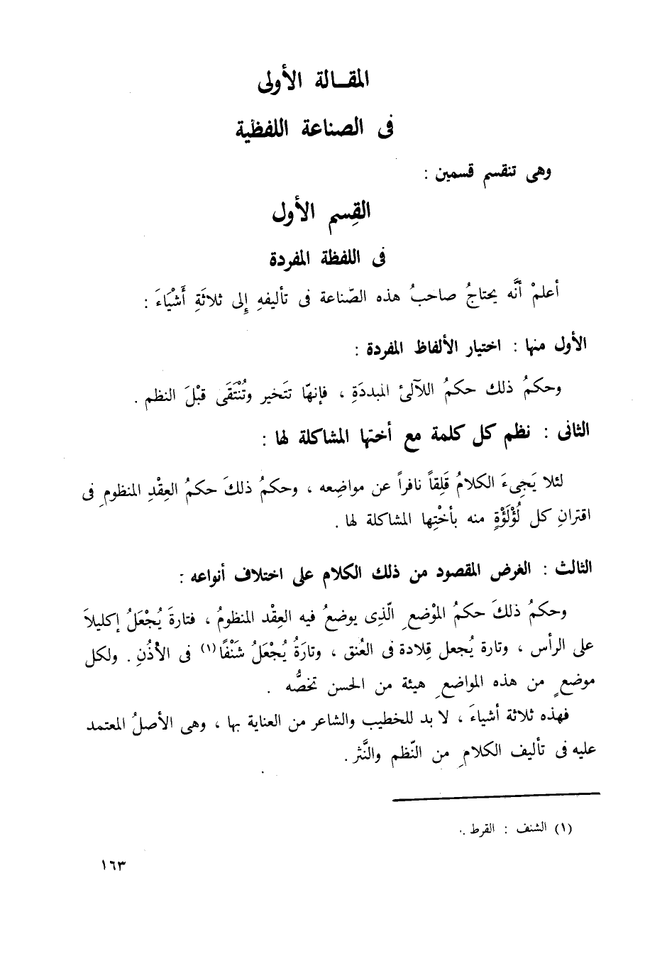 المقالة الأولى: في الصناعة اللفظية