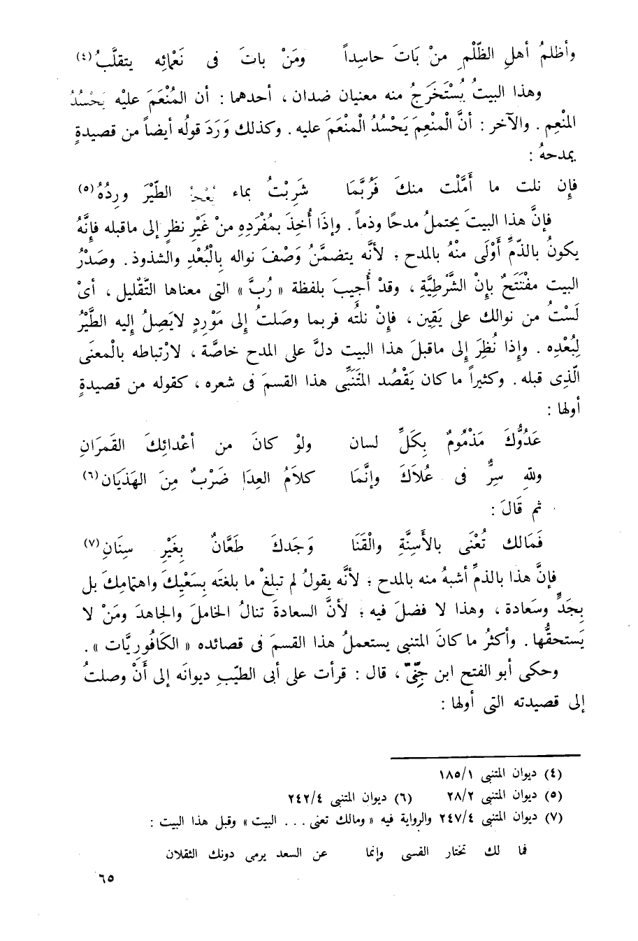 وهذا البيت يستخرج منه معنيان ضدان, أحدهما: أن المنعَم عليه يحسد المنعِم، والآخر: أن المنعِم يحسد المنعَم عليه, وكذلك ورد قوله أيضًا من قصيدة يمدحه: