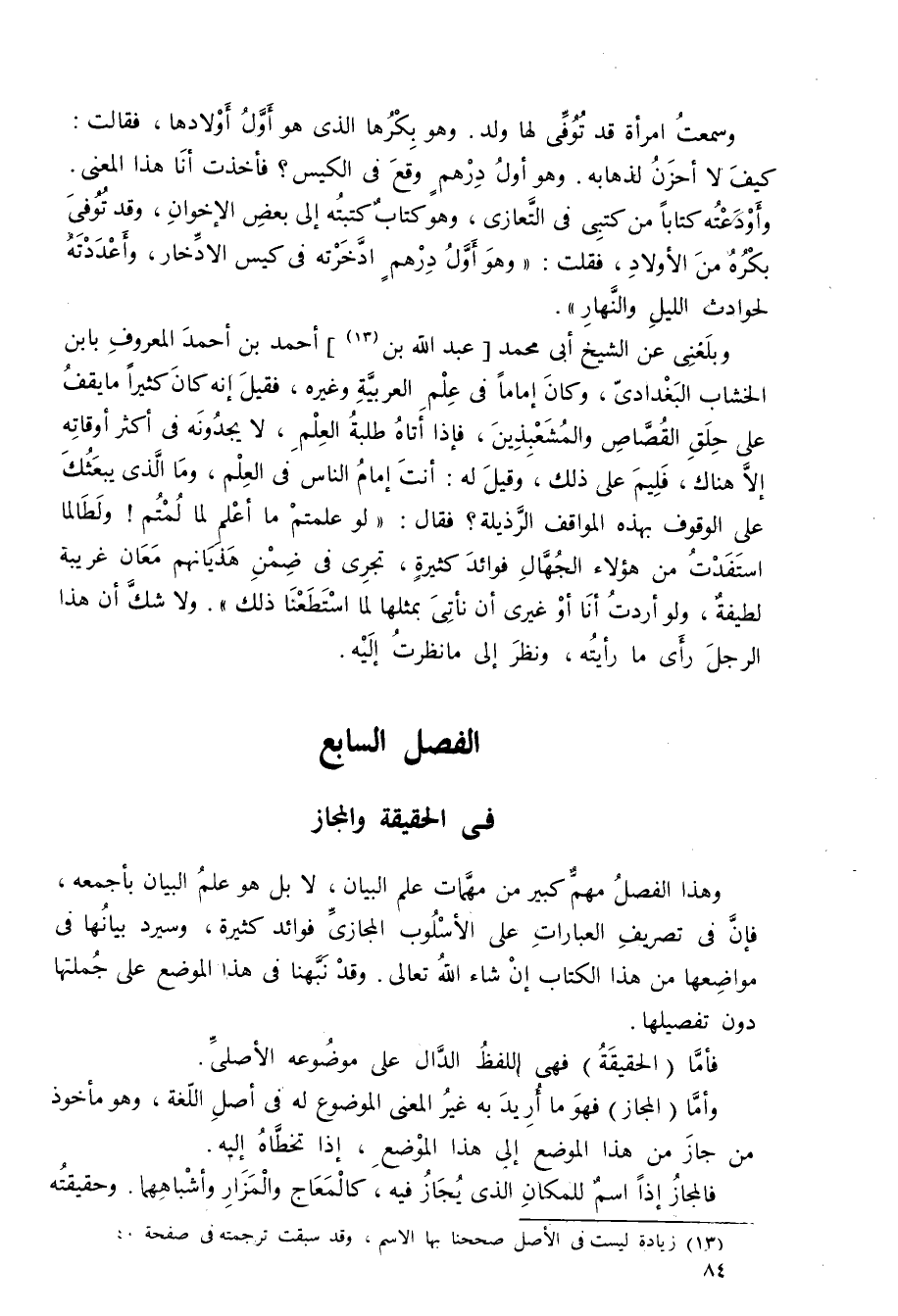 وهذا الفصل مهمٌّ كبير من مهمات علم البيان، لا بل هو علم البيان بأجمعه، فإن في تصريف العبارات على الأسلوب المجازي فوائد كثيرة، وسيرد بيانها في مواضعها من هذا الكتاب -إن شاء الله تعالى، وقد نبهنا في هذا الموضع على جملتها دون تفصيلها.