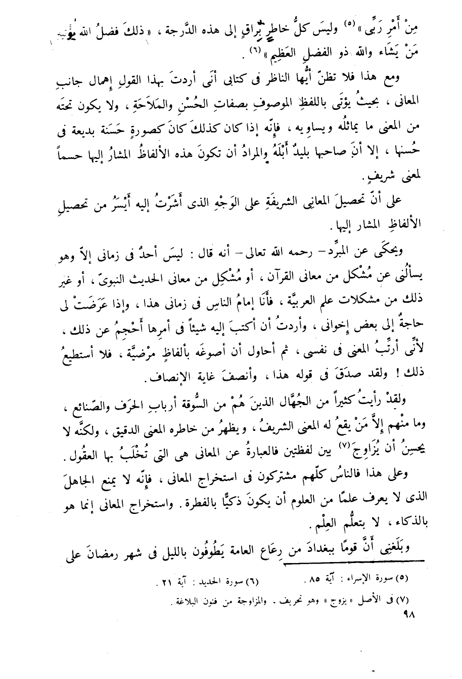 على أنَّ تحصيل المعاني الشريفة على الوجه الذي أشرت إليه أيسر من تحصيل الألفاظ المشار إليها.