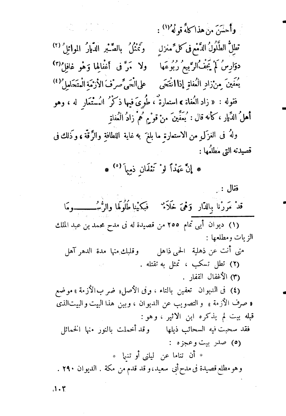 3 لم أعثر على هذا البيت في طبعة بيروت، ويوحى معنى البيت، ووزنه بأنه من قصيدته التي قالها مدح أبي الحسين محمد بن الهيثم بن شبابة التي مطلعها: