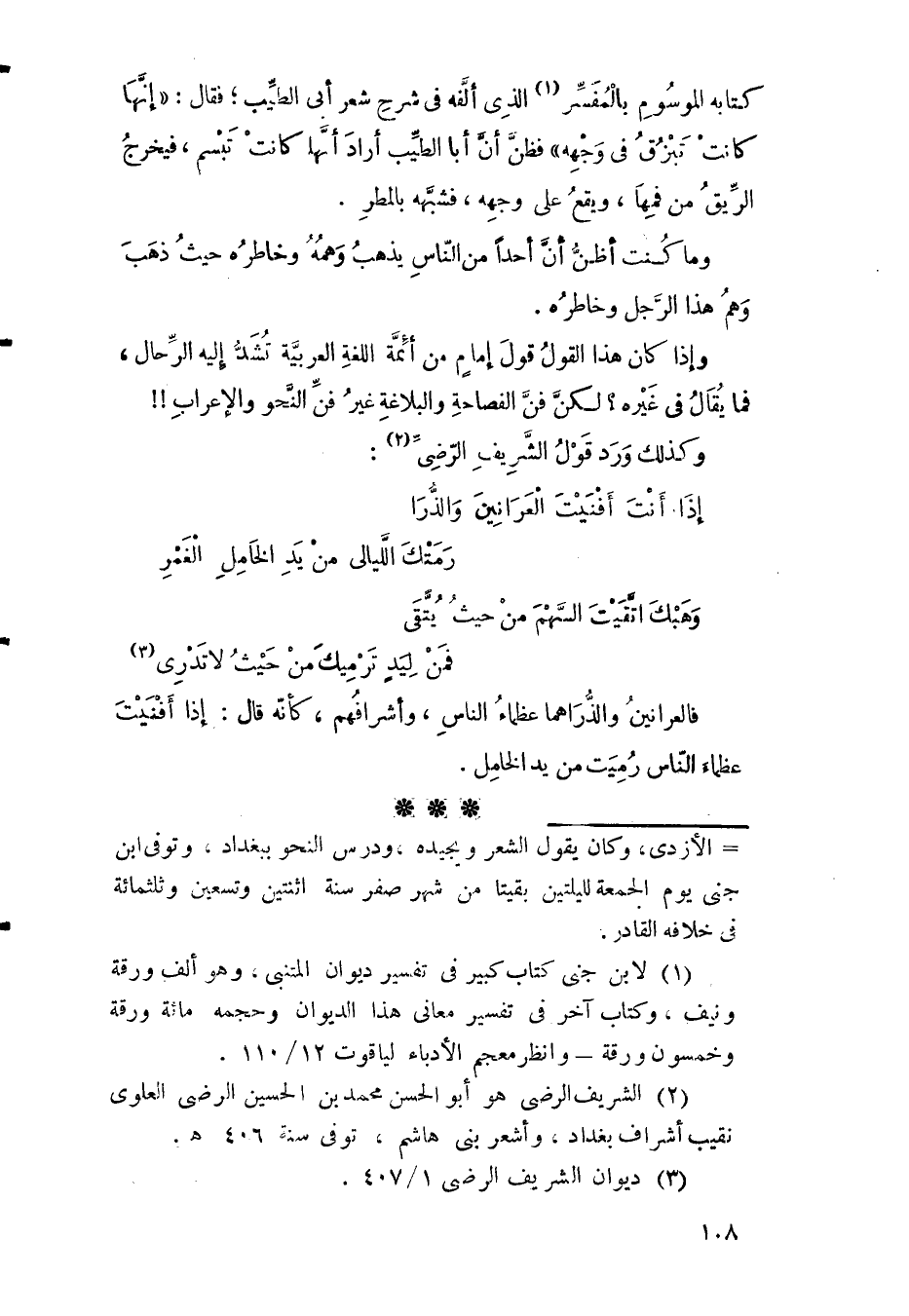6 والعجب أن ما اقترحه ابن الأثير هو نص رواية الديوان: