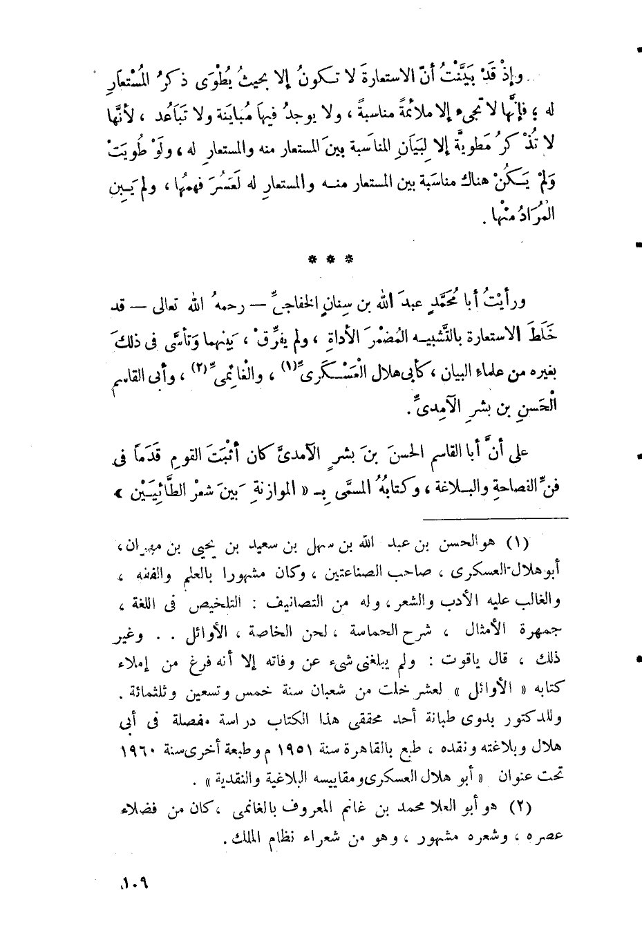 فانظر أيهما المنتمي إلى الفن كيف ذهب على البحتري مثل هذا