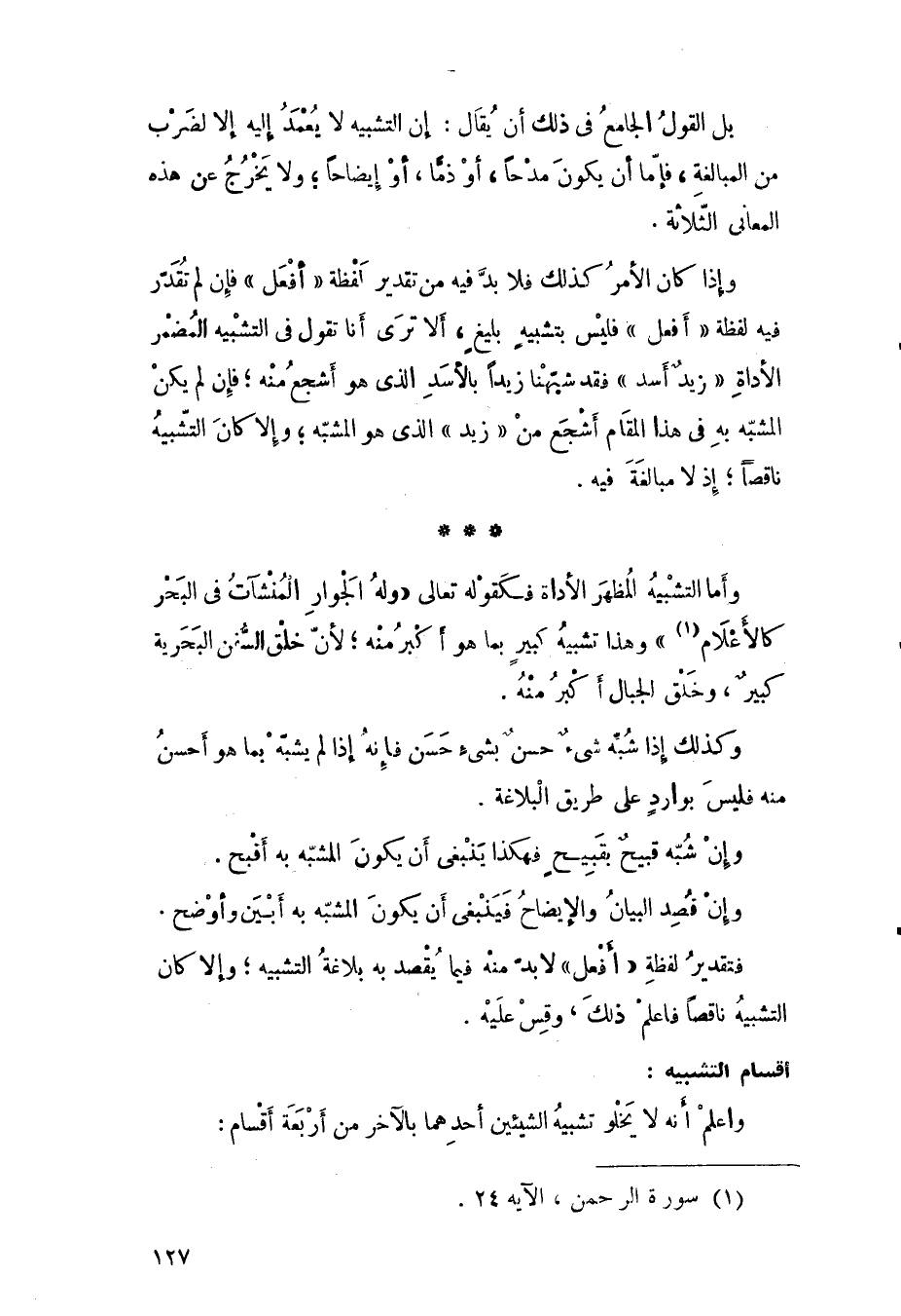 ألا ترى أن من العادة، والعرف أن تشبه الأعجاز بالكثبان، فلما عكس ذو الرمة هذه القضية في شعره جاء حسنًا لائقًا? وكذلك جاء فعل البحتري، فإن من العادة والعرف أن يشبه الوجه الحسن بالبدر، والقد الحسن بالقضيب، فلما عكس البحتري القضية في ذلك جاء أيضًا حسنًا لائقًا؟