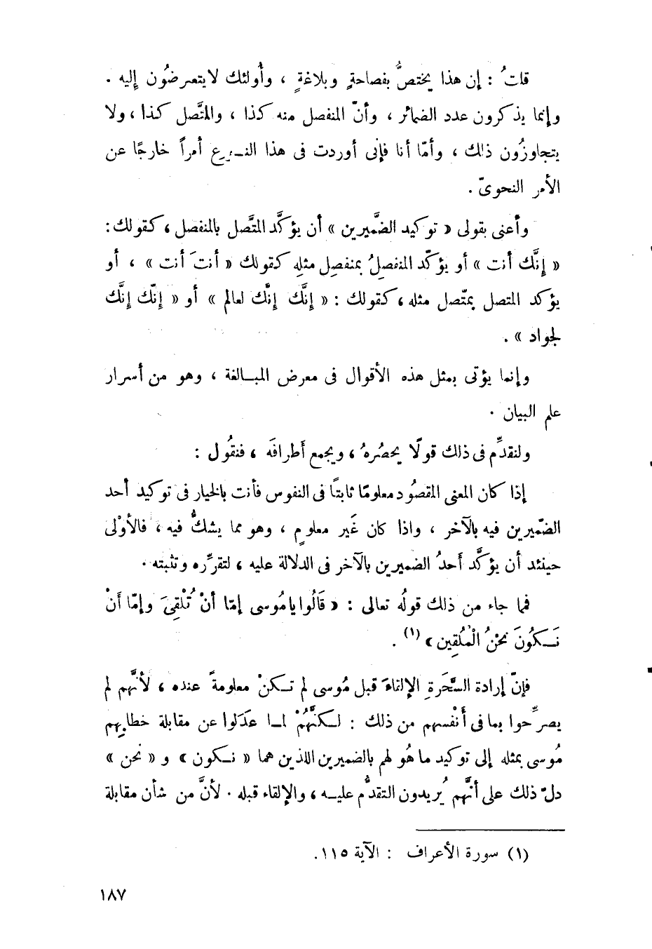 وهذا موضع من علم البيان شريف، وقلما يتفطن لاستعماله كما ينبغي.