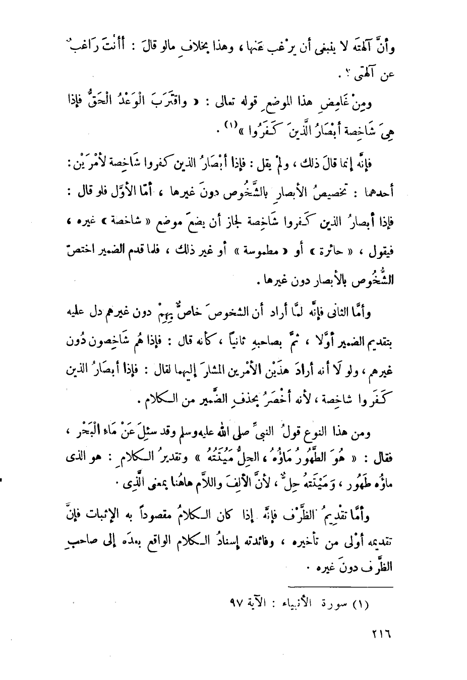 وأما القسم الثاني فإن التنبه له عسر؛ لأنه يحتاج إلى فضل تأمل، وطول فكرة،