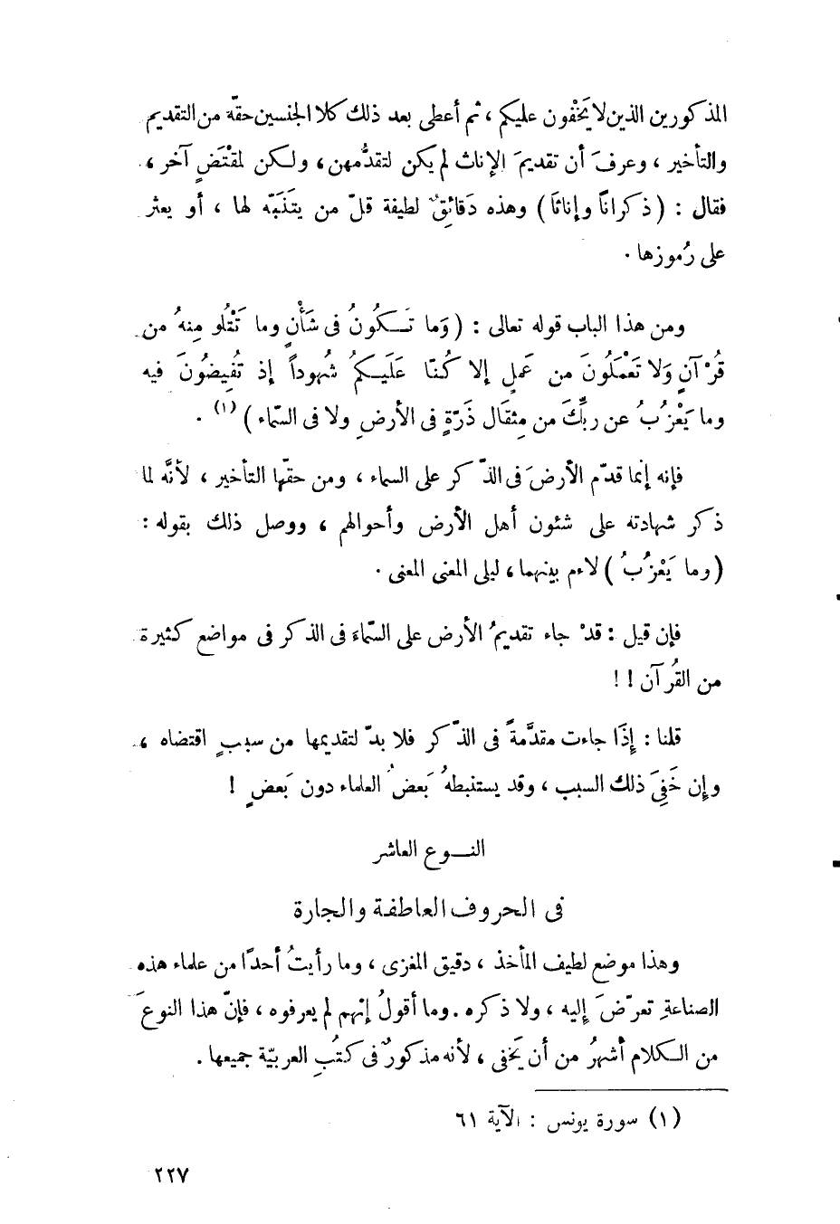 والمحذوف إذا كان كذلك دل عليه دلالة ظاهرة؛ لأنه إذا ثبتت حاشيتا الكلام وحذف وسطه ظهر المحذوف لدلالة الحاشيتين عليه.
