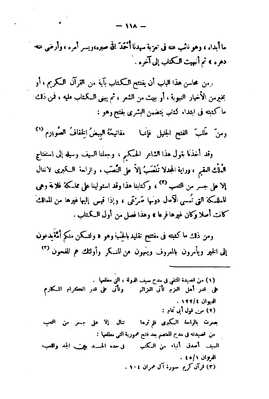ومن ذلك ما كتبته في مفتتح تقليد بالحسبة، وهو: {وَلْتَكُنْ مِنْكُمْ أُمَّةٌ يَدْعُونَ إِلَى الْخَيْرِ وَيَأْمُرُونَ بِالْمَعْرُوفِ وَيَنْهَوْنَ عَنِ الْمُنْكَرِ وَأُولَئِكَ هُمُ الْمُفْلِحُونَ} 3.