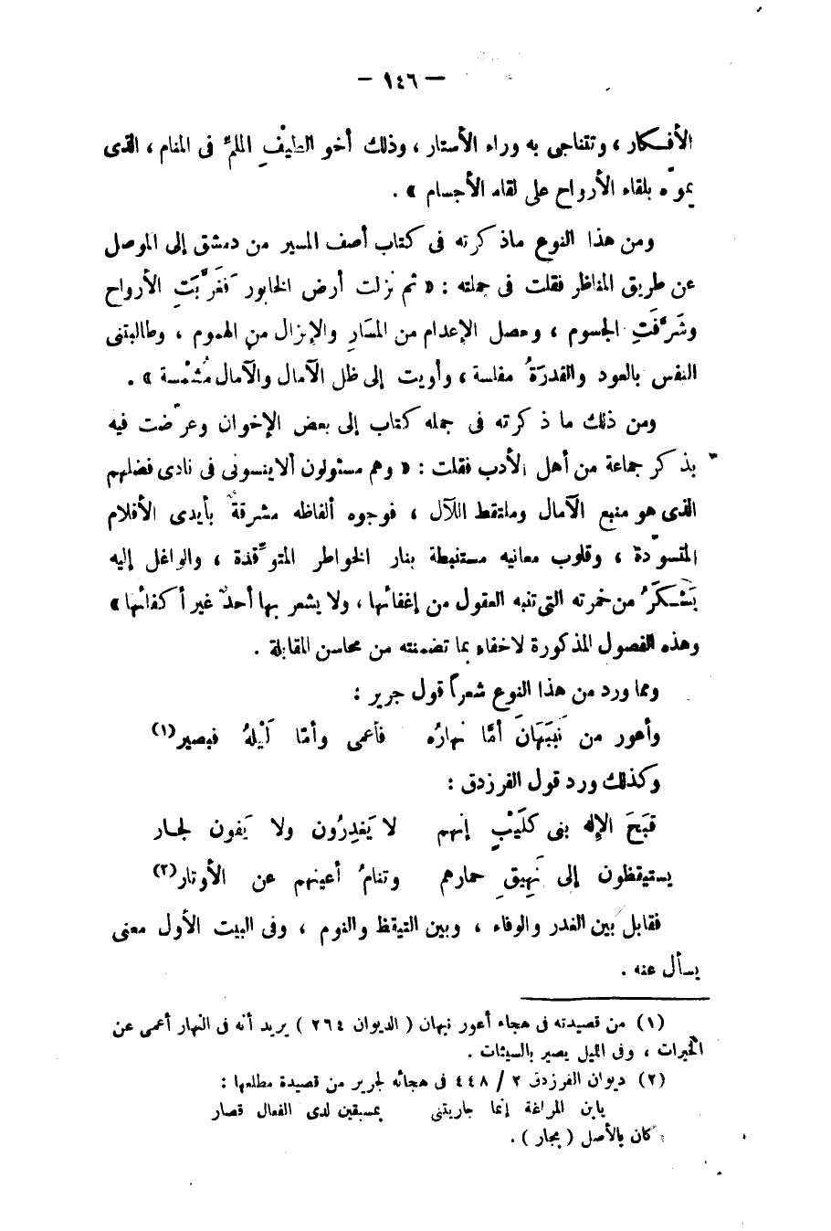 الأفكار، وتتناجى به من وراء الأستار، وذلك أخو الطيف الملم في المنام، الذي يموه بلقاء الأرواح على لقاء الأجسام".