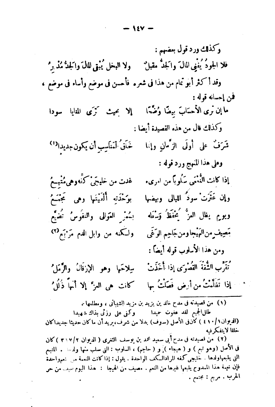 "الديوان 1/ 410" كان في الأصل "سوف" بدلا من شرف، يريد أن ما كان حديثا جديدا كان خلقا لا يتفكر فيه.